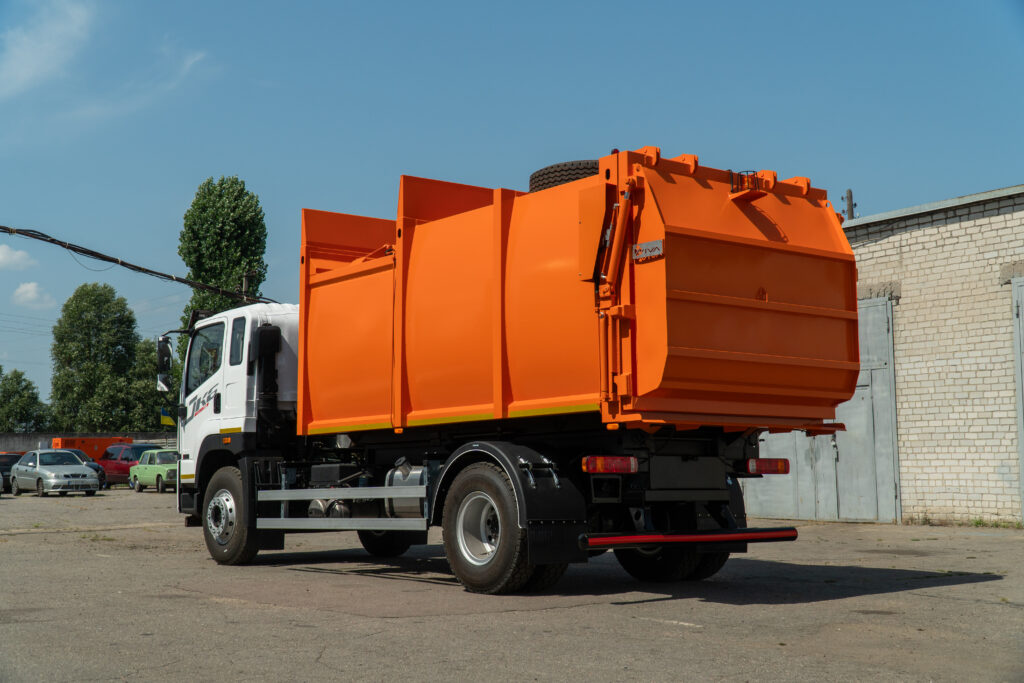 Автомобіль обладнаний бункером об’ємом 18 м³, що дозволяє перевозити більше відходів за один рейс та зменшити кількість поїздок. Це значно підвищує ефективність при роботі у щільному міському графіку. Герметичність кузова забезпечує повну безпеку під час транспортування.