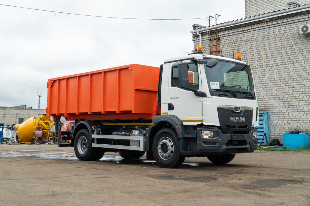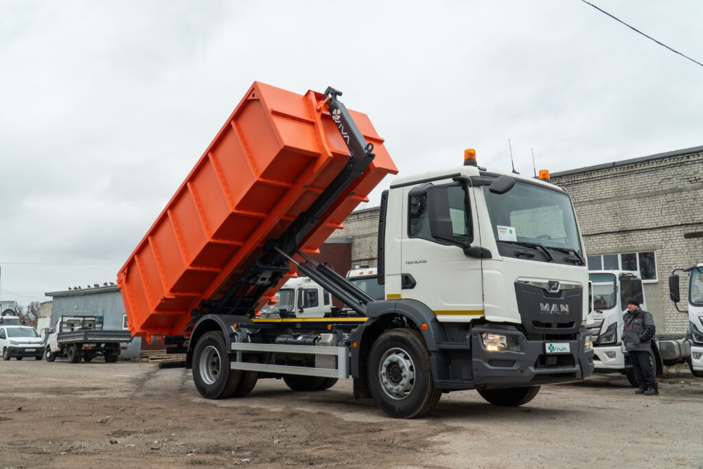 Вантажопідйомність скіп-ліфта дозволяє працювати з вантажами до 10 тонн і кузовами об’ємом до 10 м³, виготовленими з конструкційної сталі S355. Кузови можуть розвантажуватися самоскидним методом, що значно розширює функціональність автомобіля в комунальних і будівельних роботах.