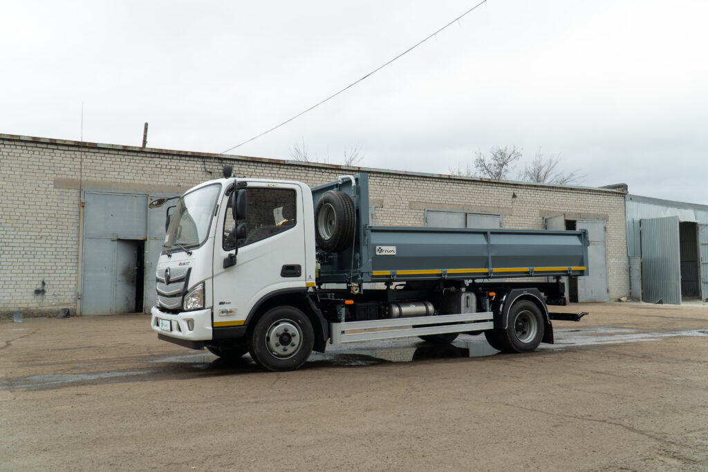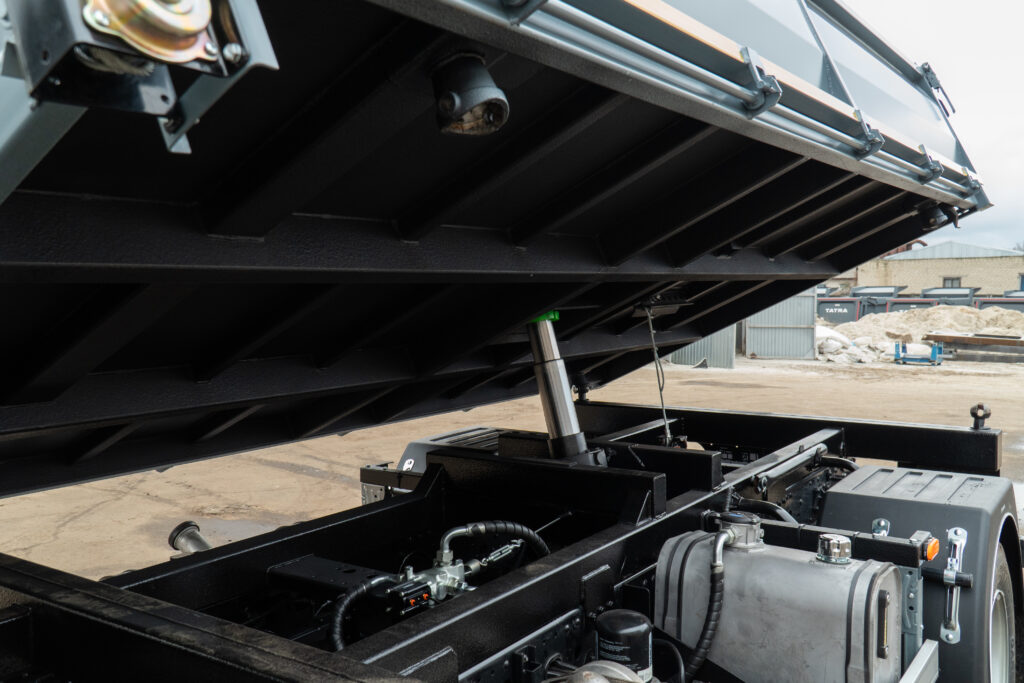 Самоскид оснащений сталевим кузовом об’ємом 5 м³ з вантажопідйомністю 6,3 т, що робить його оптимальним рішенням для перевезення сипучих матеріалів у межах міста та на компактних об’єктах. Кузов виготовлений із високоміцної сталі SТ355, товщина підлоги становить 4 мм, бортів — 3 мм, що гарантує довговічність конструкції та стійкість до щоденних навантажень.
