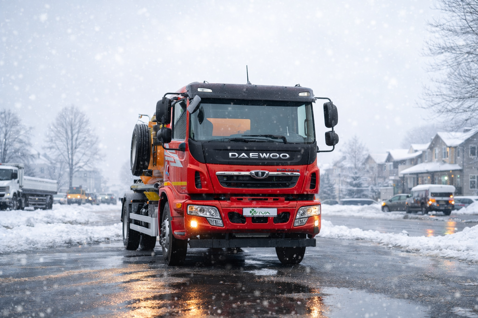 Автомобіль вакуумний ВІВА АС-1003 DAEWOO MAXIMUS, на базі автомобільного шасі DAEWOO MAXIMUS призначений для вакуумного збору, транспортування та зливу рідких відходів, що не містять вибухонебезпечних або горючих речовин. Автомобіль складається з шасі, герметичної цистерни, вакуумного насоса з приводом, сигнально-запобіжного пристрою, приймального люка зі всмоктувальним шлангом, системи керування кранами та трубопроводом, а також додаткового електроустаткування. Заповнення цистерни здійснюється за допомогою вакуумного насоса, а спорожнення — самопливом або під тиском повітря, що подається тим самим насосом. Надійна конструкція, сучасне обладнання та ефективний двигун потужністю 280 к.с. забезпечують продуктивну та безпечну експлуатацію в умовах міської та промислової інфраструктури.