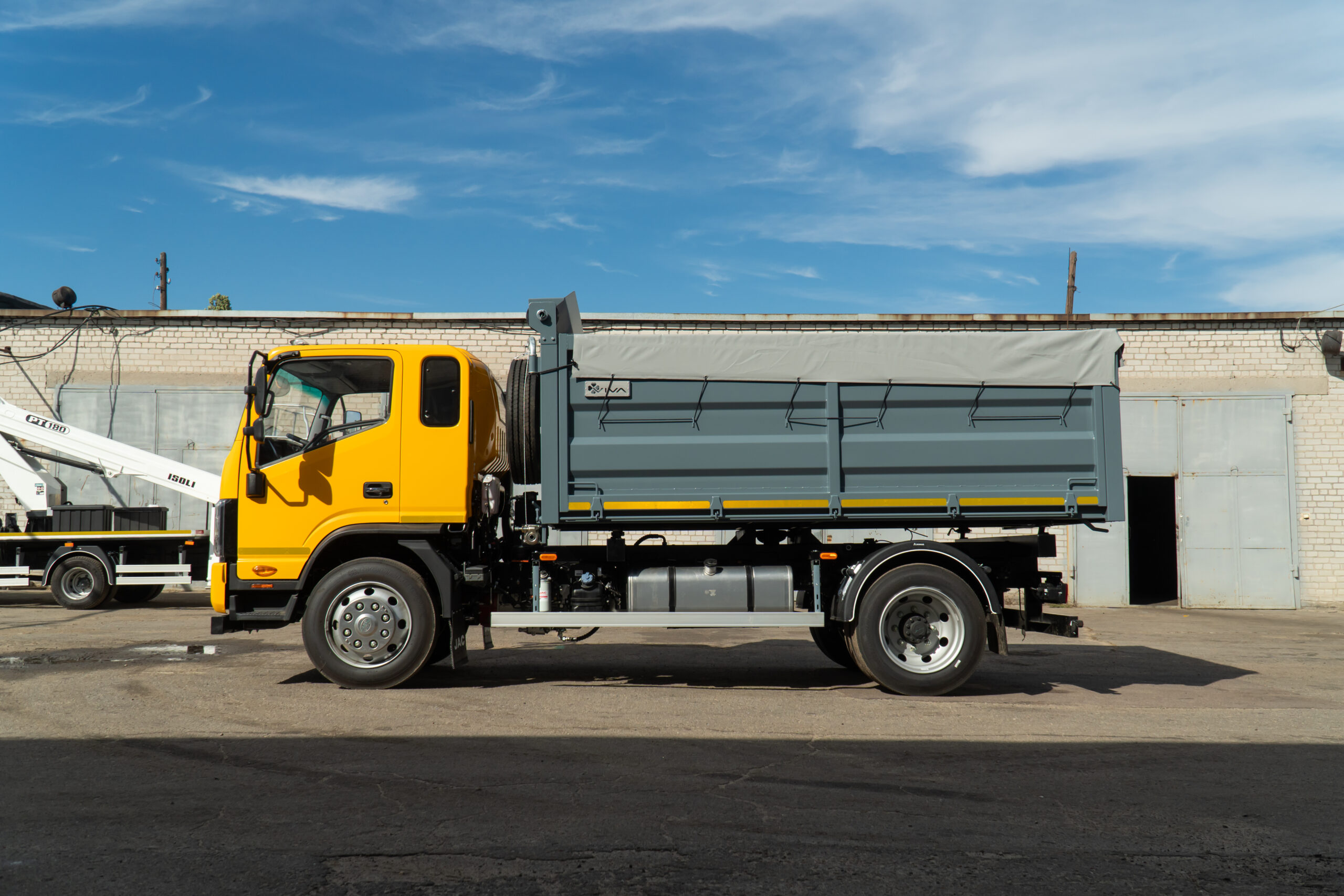 | Комплектація | автоматичні замки заднього борту кузова, антигравійний захист надрамника та зовн. днища кузова, бокові захисні протипідкатні пристрої, бронзові підшипники ковзання для фронтального циліндру, гальванічне покриття всіх пальців, гідравлічний бак 60 л з н/ж сталі з фільтром та краном, два протипідкатних башмака з кронштейнами, кронштейн запасного колеса з лебідкою, кут підйому не менше 45°, одна гарячеоцинкована драбина на кузові, пластикові крила для коліс задньої вісі, функція стряхування кузова при розвантажені |