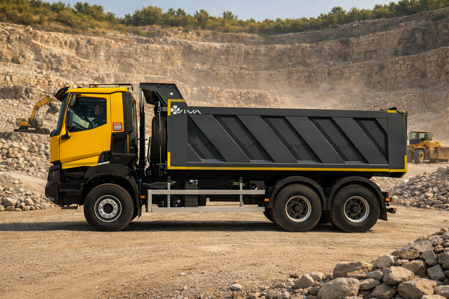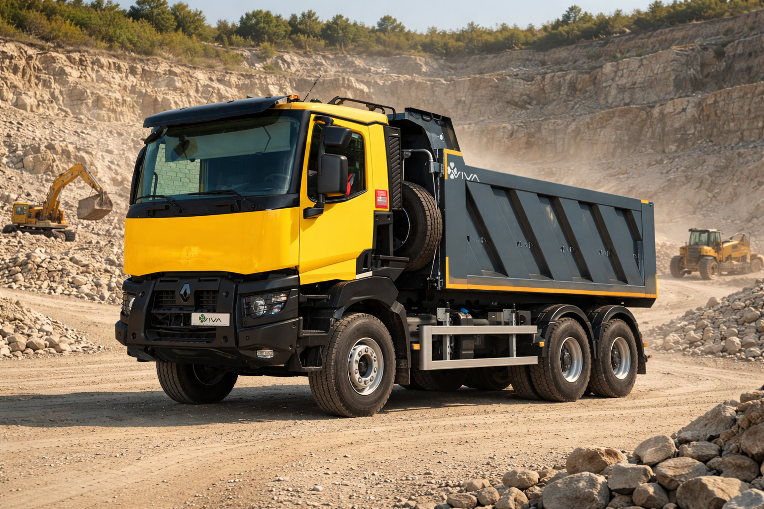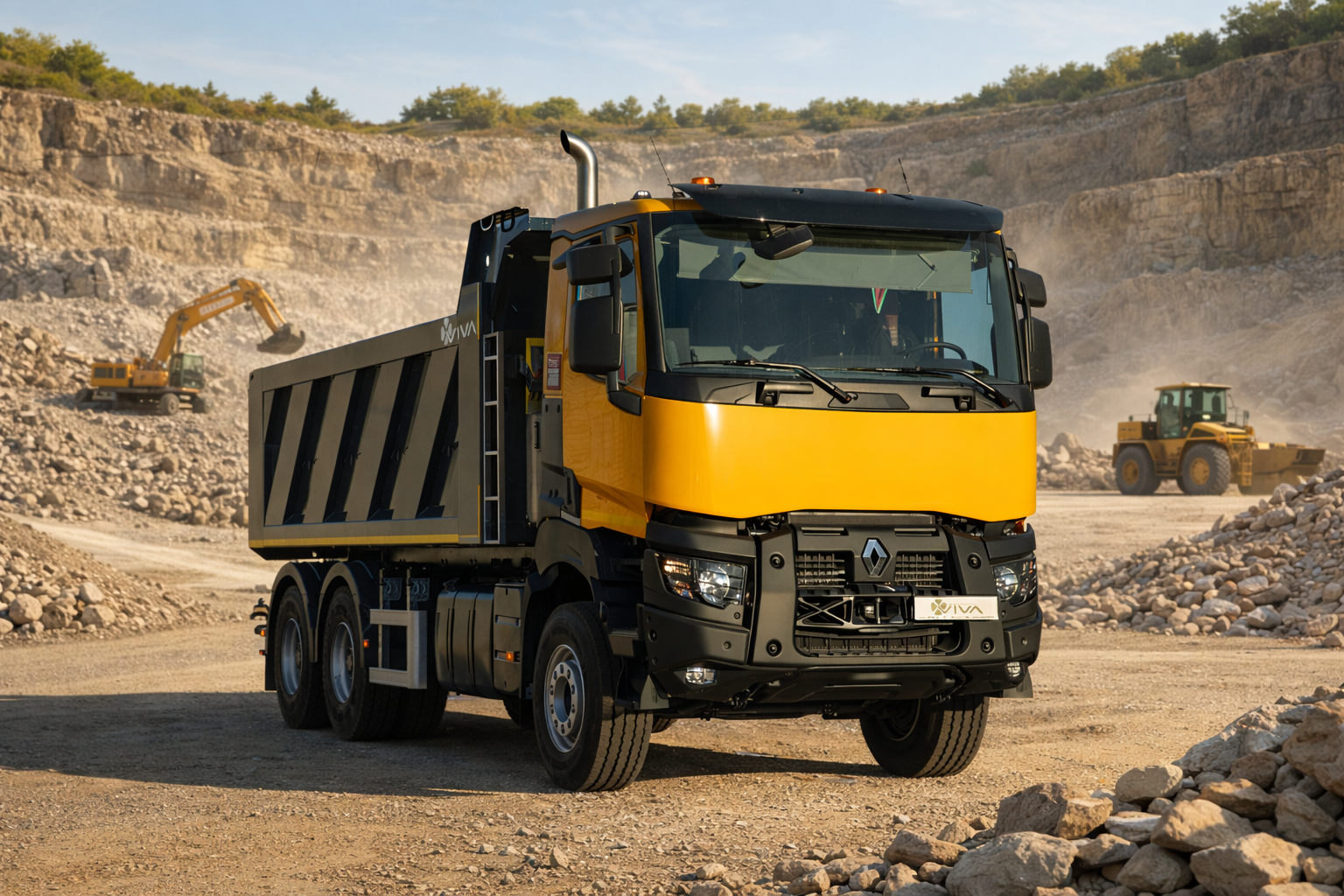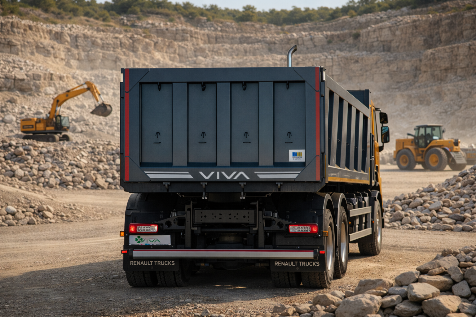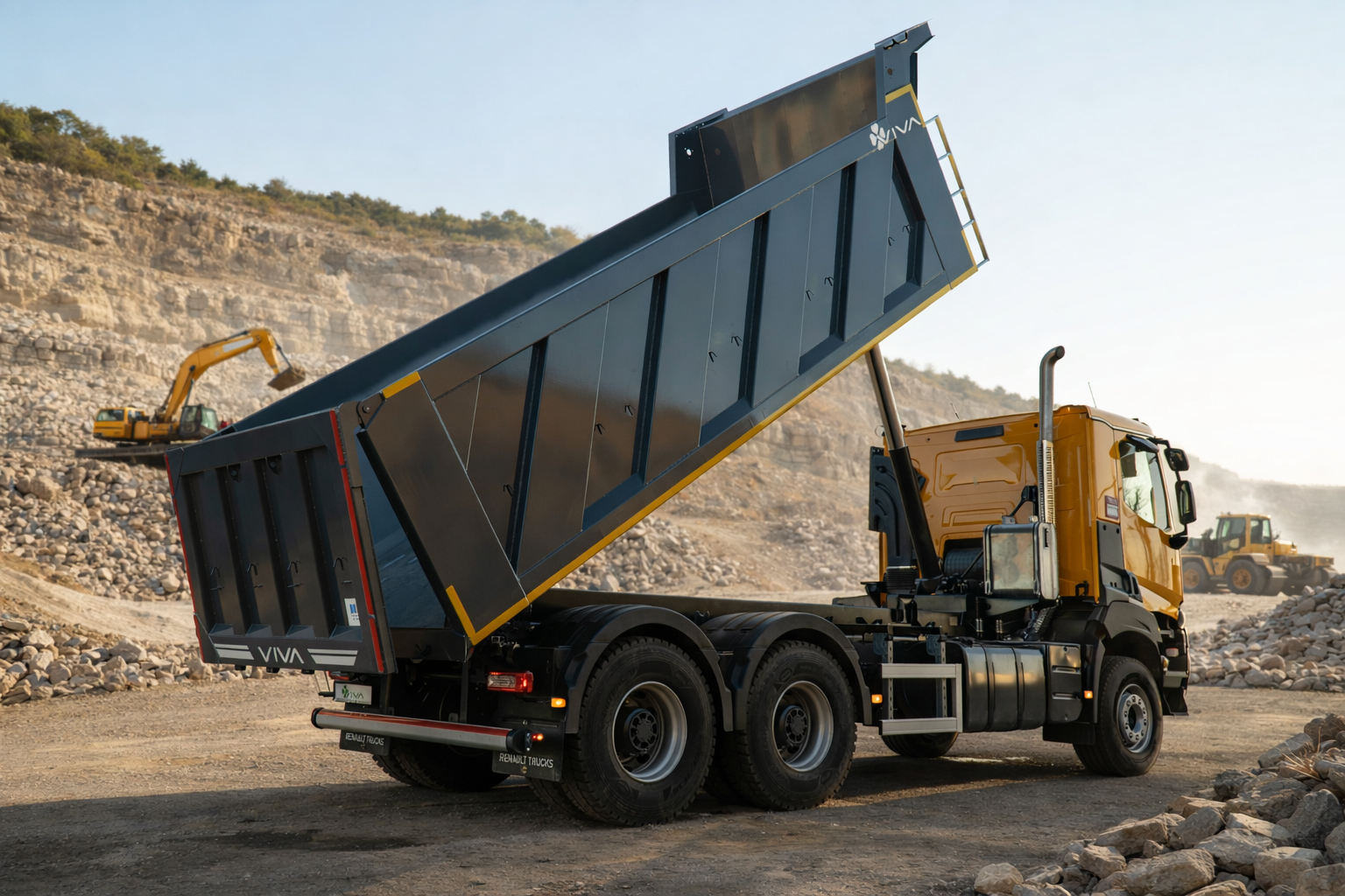 Самоскид ВІВА СВ R RENAULT K – це потужний вантажний автомобіль, створений на базі високотехнологічного та надійного шасі RENAULT K. Він призначений для перевезення сипких матеріалів на будівельних майданчиках, у кар’єрах, аграрному секторі та комунальному господарстві. Кузов самоскида має заднє розвантаження, виготовлений зі зносостійкої сталі, що забезпечує тривалий термін експлуатації навіть в умовах підвищеного навантаження. Посилена конструкція кузова з додатковими ребрами жорсткості гарантує стабільність та безпеку під час роботи.