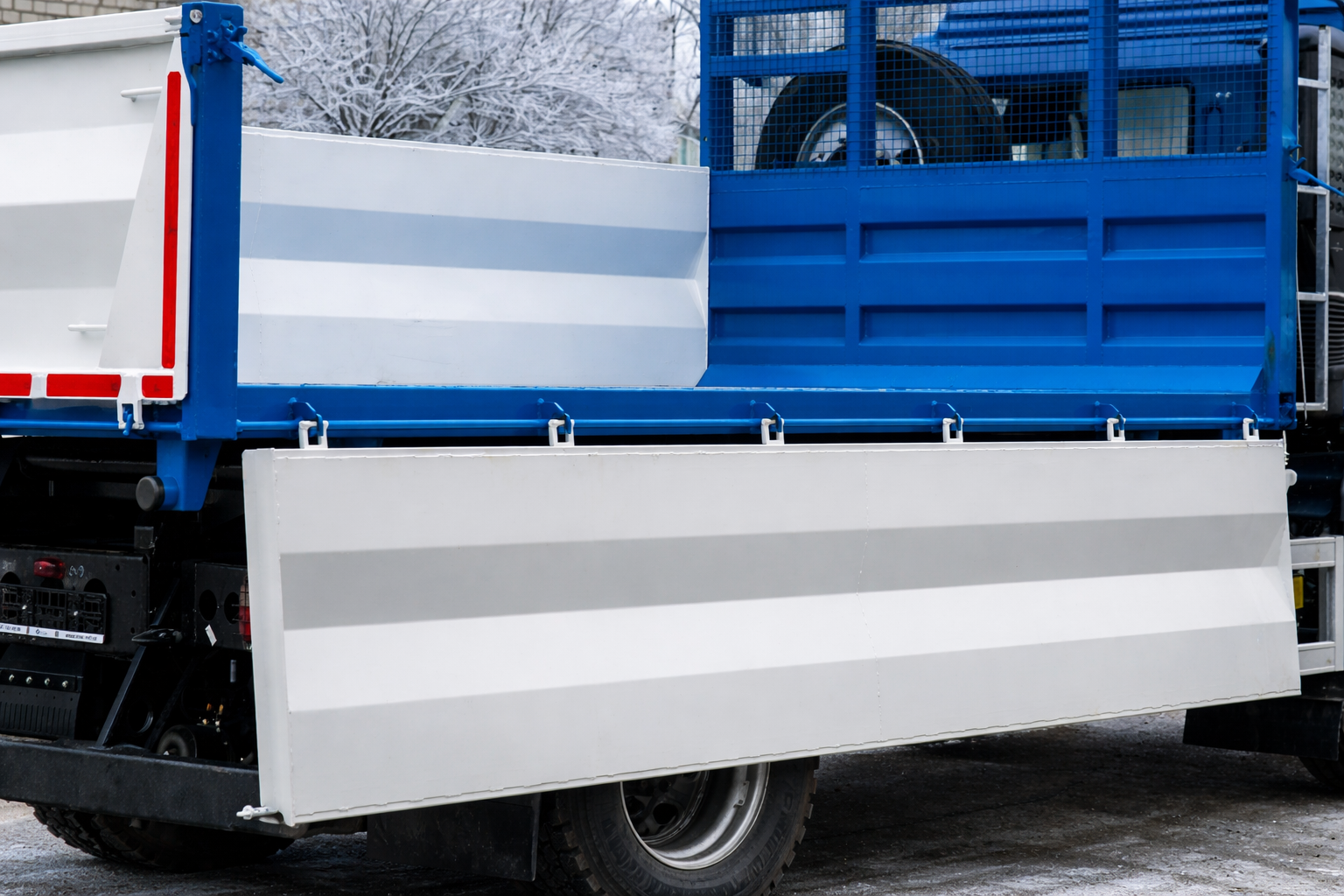| Комплектація | ABS, ASR, ESC, антигравійний захист надрамника та зовн. днища кузова, бокові та задній захисні протипідкатні пристрої, випускне допоміжне гальмо, гідравлічний бак 60 л з н/ж сталі з фільтром та краном, гідравлічний насос шестеренчатий IPH, Італія, гідророзподільник IPH, Італія, гідроциліндр підйому кузова INTERPUMP HYDRAULICS, Італія, два протипідкатних башмака з кронштейнами, джойстик керування IPH, Італія, додаткове утеплення кабіни, електросклопідйомники, задній стабілізатор поперечної стійкості, захисний козирьок, що знімається, кондиціонер, кронштейн запасного колеса з лебідкою, круїз-контроль, кут підйому не менше 45°, матеріал кузова та надрамника – ST 355, одна гарячеоцинкована драбина на кузові, опалювач салону підвищеної продуктивності, підготовка під встановлення другого ряда бортів, пластикові крила для коліс задньої вісі, пневмосидіння, пружини підтримки бокових бортів, радіоприймач з USB, антена, динаміки, функція стряхування кузова при розвантажені |