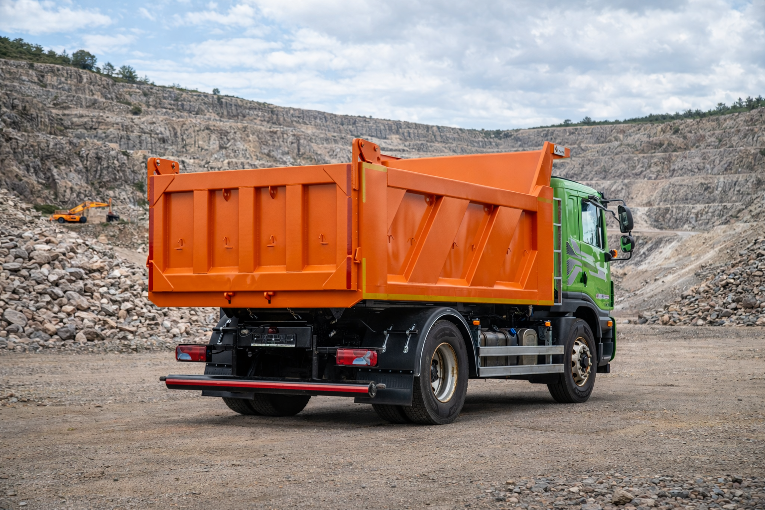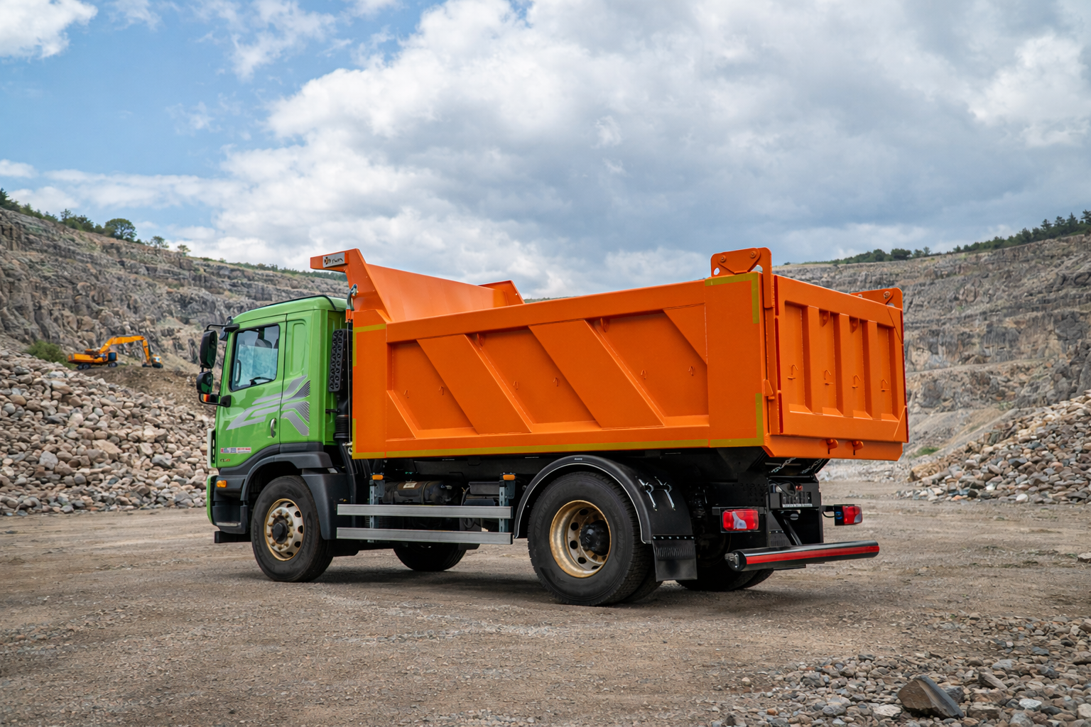 Кузов самоскиду виготовлений зі зносостійкої сталі, має посилені ребра жорсткості та забезпечує заднє розвантаження, що робить його особливо зручним на обмежених майданчиках. Продумана конструкція кузова дозволяє швидко та безпечно здійснювати розвантаження навіть при інтенсивному графіку роботи.