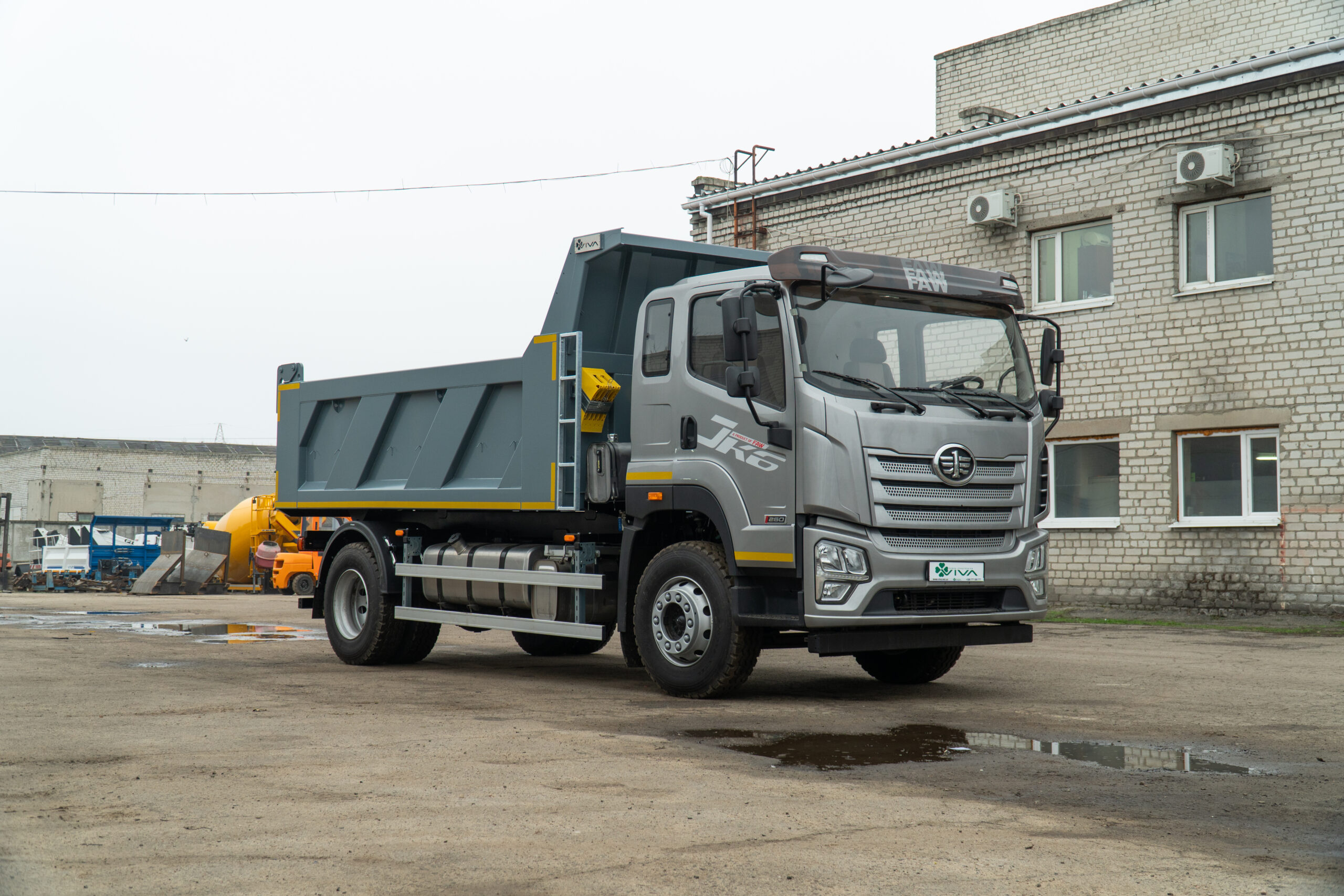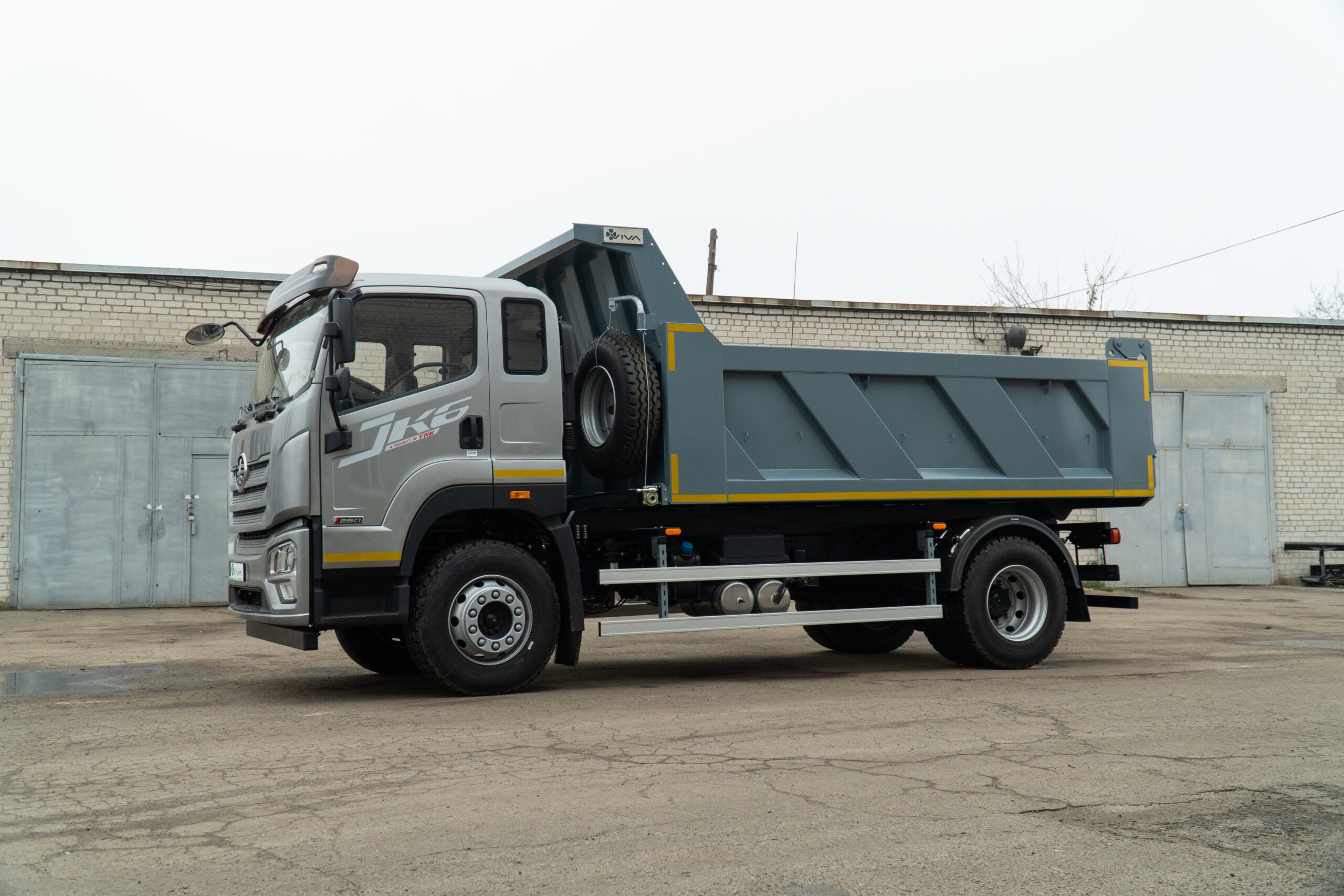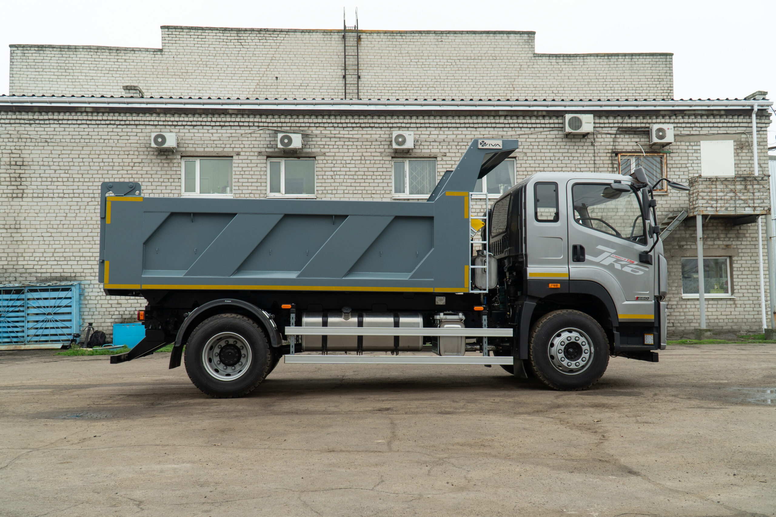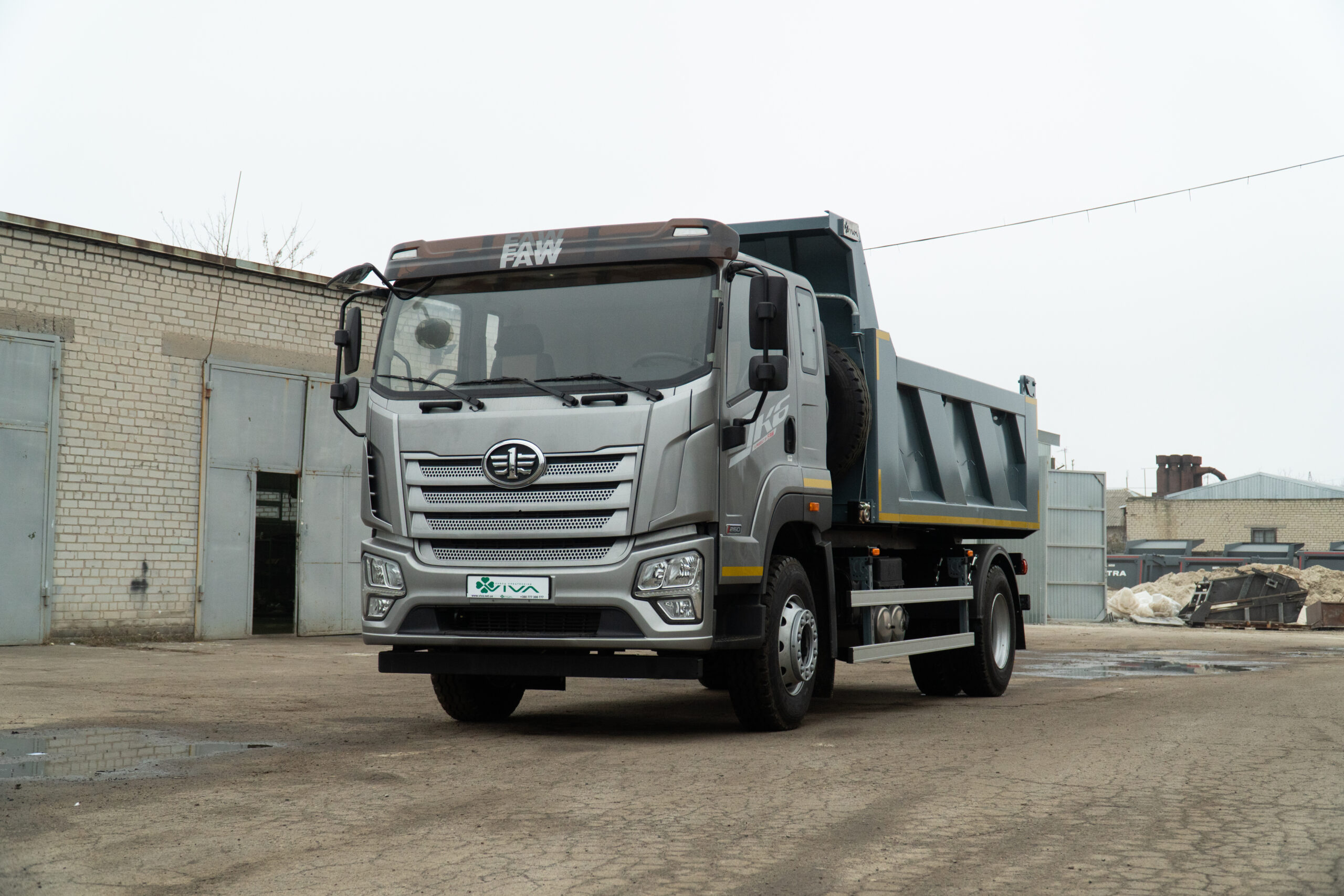 Самоскид VIVA CB R FAW CA5181 — надійний вантажний автомобіль заднього розвантаження, створений для щоденної інтенсивної роботи у будівництві, комунальному господарстві та інфраструктурних проєктах. Машина побудована на перевіреному шасі FAW Group CA5181, яке поєднує міцність конструкції та стабільну роботу під навантаженням. Дизельний двигун 6,6 л потужністю 264 к.с. у парі з механічною коробкою передач забезпечує впевнену тягу, контроль і економічність у реальних умовах експлуатації. Простора 3-місна кабіна з кондиціонером створює комфортні умови для тривалих робочих змін. Кузов об’ємом 10 м³ і вантажопідйомністю 9,5 т виготовлений зі сталі S355 (днище — 5 мм, борти — 4 мм), що гарантує довговічність і стійкість до інтенсивних навантажень. Заднє розвантаження з італійською гідравлікою IPH (PENTA), автоматичні замки борту та система струшування забезпечують швидке й ефективне вивантаження матеріалу. VIVA CB R FAW CA5181 — практичний і витривалий самоскид, який працює на результат щодня.