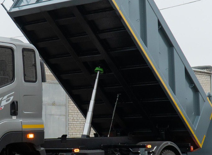 | Комплектація | автоматичні замки заднього борту кузова, антигравійний захист надрамника та зовн. днища кузова, бокові та задній захисні протипідкатні пристрої, бронзові підшипники ковзання для фронтального циліндру, гальванічне покриття всіх пальців, гачки для кріплення тенту, гідравлічний бак 60 л з н/ж сталі з фільтром та краном, гідравлічний насос шестеренчатий, гідророзподільник IPH, Італія, гідроциліндр підйому кузова INTERPUMP HYDRAULICS, Італія, два протипідкатних башмака з кронштейнами, денні ходові вогні, джойстик керування IPH, Італія, електричний підігрів дзеркал, електросклопідіймачі, зумер заднього ходу, кондиціонер, кронштейн запасного колеса з лебідкою, кут підйому не менше 45°, магнітола (радіо/MP3), матеріал кузова та надрамника – ST 355, одна гарячеоцинкована драбина на кузові, пластикові крила для коліс задньої вісі, пластикові крила з бризковиками, протитуманні фари, ABS+ESC, рульова колонка, що регулюється, спальне місце, функція стряхування кузова при розвантажені, центральний замок |