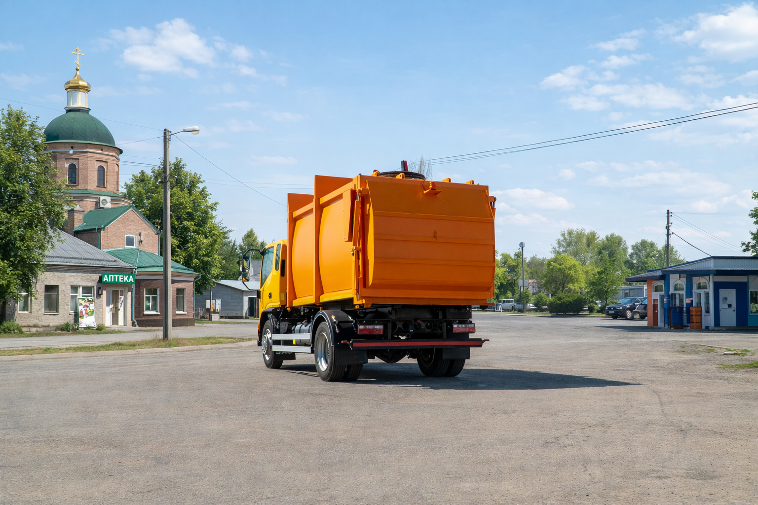 | Комплектація | 1 проблисковий маячок, автоматичні замки заднього борту кузова, багатошарове грунтування та фарбування, бак для оливи з пристроєм контролю рівня, бокові протипідкатні захисти зліва/справа, вантажопідйомність маніпулятора 750 кг, гідравлічний насос шестеренчатий, гідравлічний обмежувач кута підйому бункеру, денні ходові вогні, додаткове антикорозійне покриття днища бункера, додаткове антикорозійне покриття криші бункера, додаткове антикорозійне покриття надрамника, драбина на бункері, електричне налаштування дзеркал, електричний підігрів дзеркал, електросклопідіймачі, зручний пульт керування з підсвічуванням, зумер заднього ходу, кондиціонер, кондиціонер, кришка завантажувального люку з гідроприводом, ліхтар підсвітки робочої зони, магнітола (радіо/MP3), надійне гідравлічне обладнання, обладнання виготовлене зі сталі 09Г2С (ST355), один аутригер (домкрат), підігрів паливної системи та картера двигуна, пластикові крила для коліс задньої вісі, пластикові крила з бризковиками, рульова колонка, що регулюється, спальне місце, універсальний захват для контейнерів К075, К1.1, центральний замок з дистанційним керуванням |