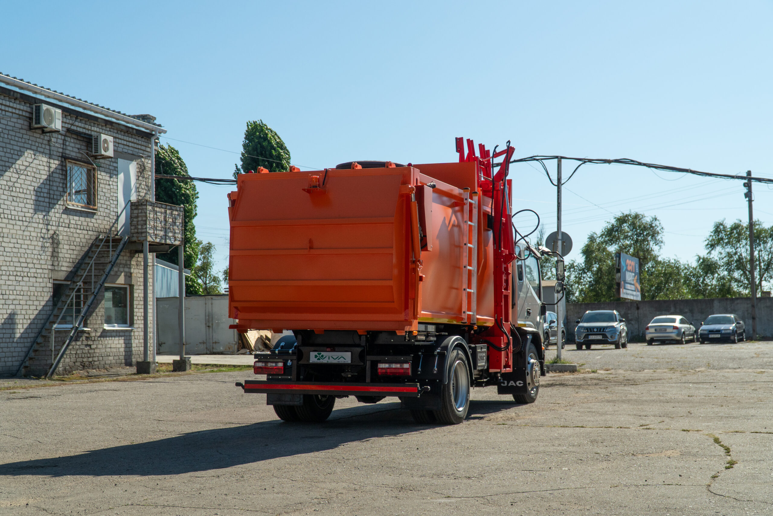 Сміттєвоз бокового завантаження “ВЛІВ МІНІ Б 12-12 JC N120” – це універсальне обладнання, яке дозволяє обслуговувати як радянські контейнери так і євро контейнери. Шасі JAC N120 китайського виробництва надійне та доповнене гарними технічними характеристиками, що підтверджено досвідом експлуатації в Україні. Шасі оснащується багатою базовою комплектацією.