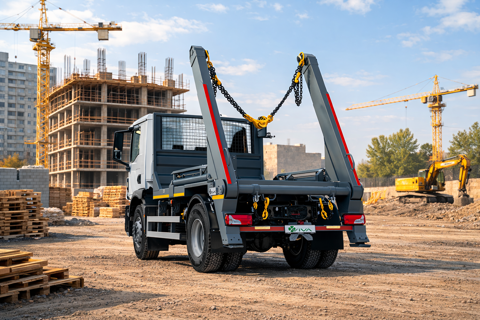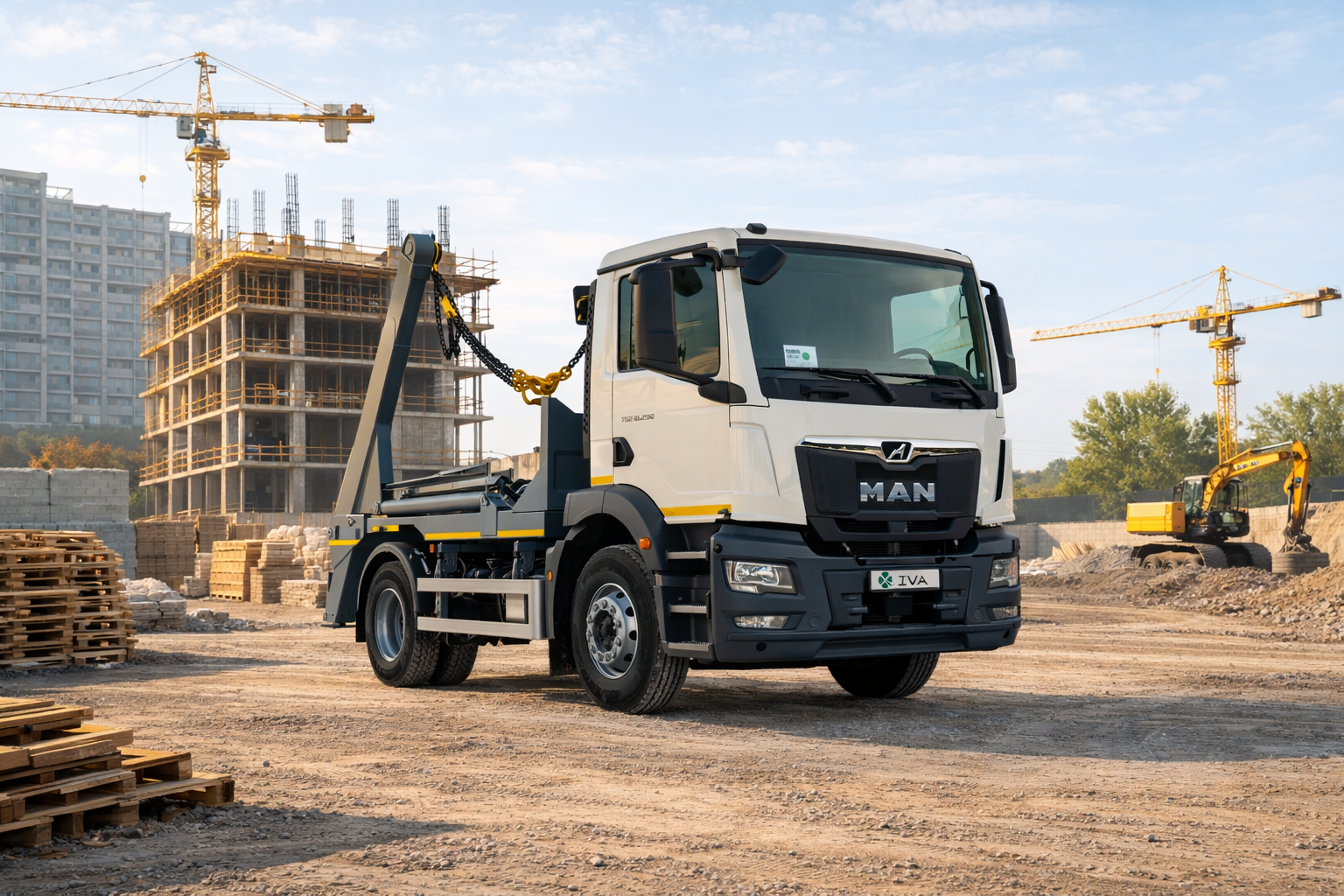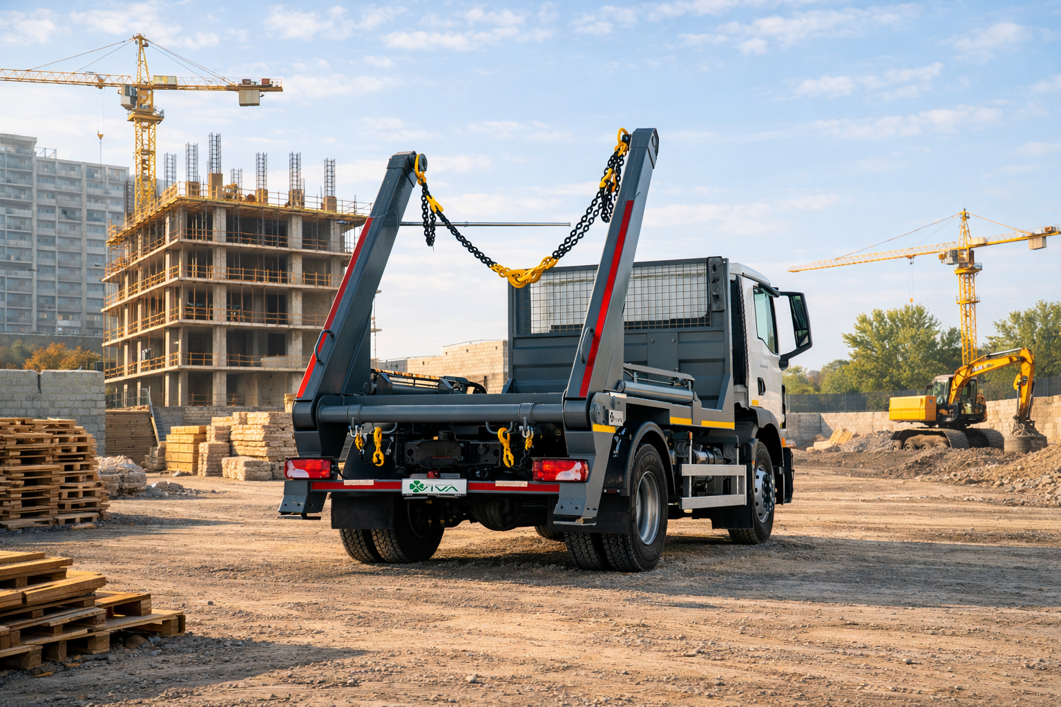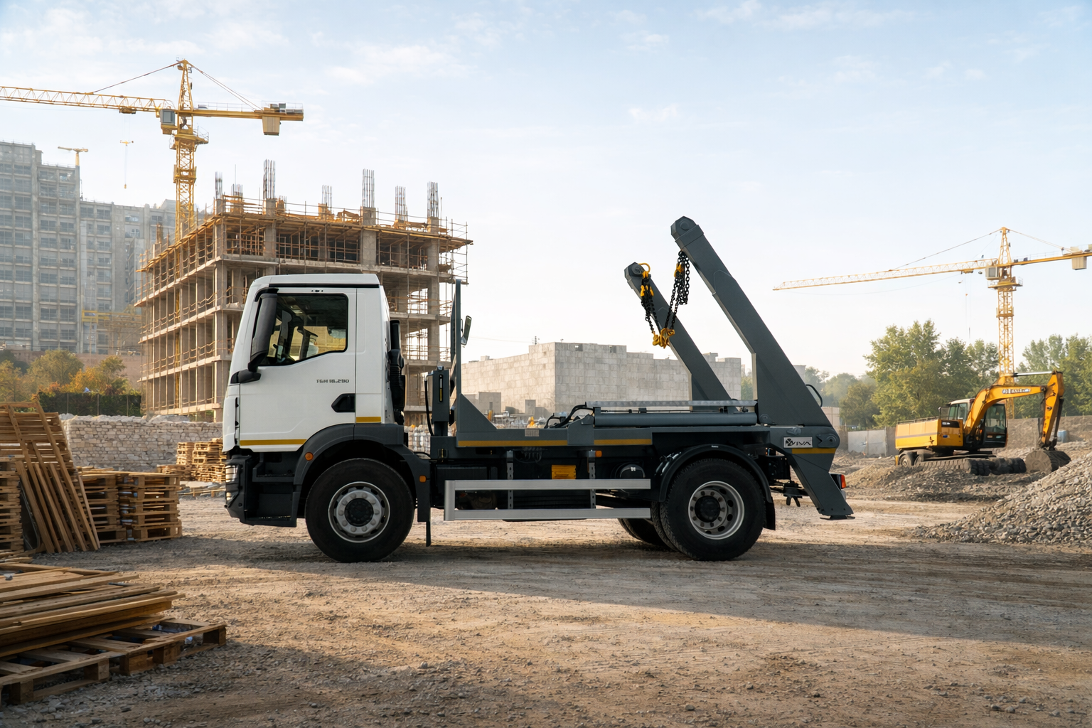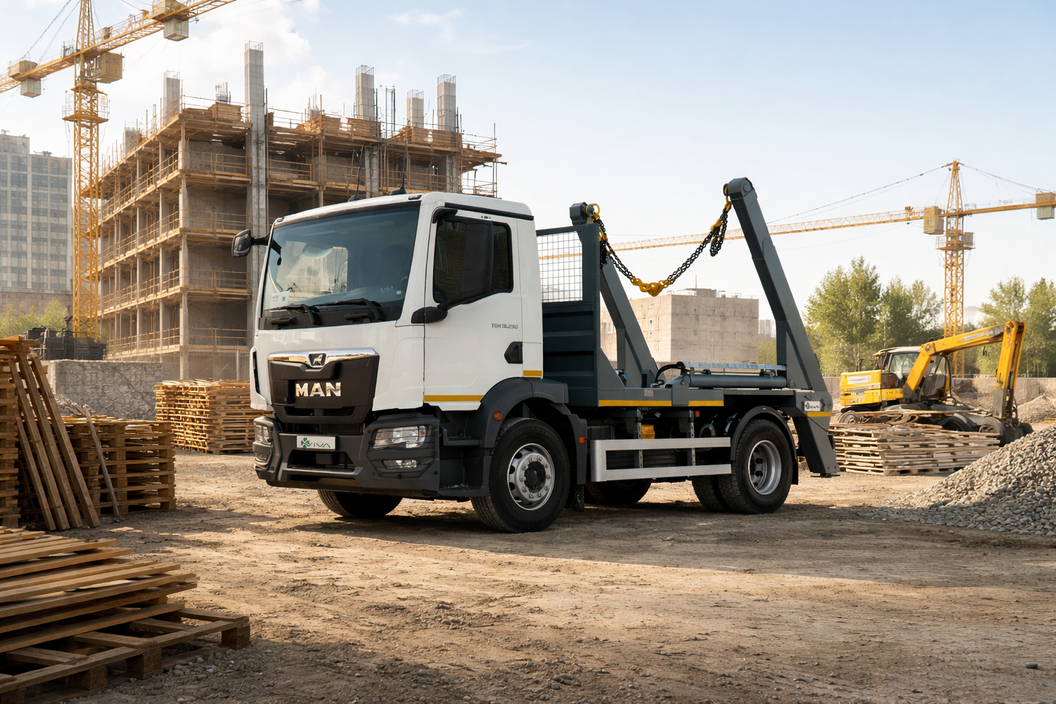 Вантажний автомобіль зі змінними кузовами VIVA ВАС-0701 — це багатофункціональна техніка, оснащена системою скіп-ліфта, що дозволяє ефективно працювати зі змінними кузовами у комунальному, будівельному та транспортному секторі. Автомобіль побудований на надійному шасі MAN TGM 18.290 з колісною формулою 4×2 та двигуном потужністю 290 к.с. об’ємом 6,87 л, що забезпечує високу продуктивність та стабільну роботу в різних умовах експлуатації. Система скіп-ліфта вантажопідйомністю 10 тонн оснащена двома незалежними стрілами з окремим керуванням, стопорним гаком на цепному приводі та зручним зовнішнім пультом керування, що забезпечує швидке та надійне завантаження змінних кузовів. VIVA ВАС-0701 — це універсальний автомобіль, який поєднує потужність, надійність і практичність, забезпечуючи ефективну роботу у міських та промислових умовах.