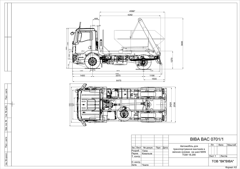 | Модель та найменування шасі | MAN TGM 18.290 BL CH |