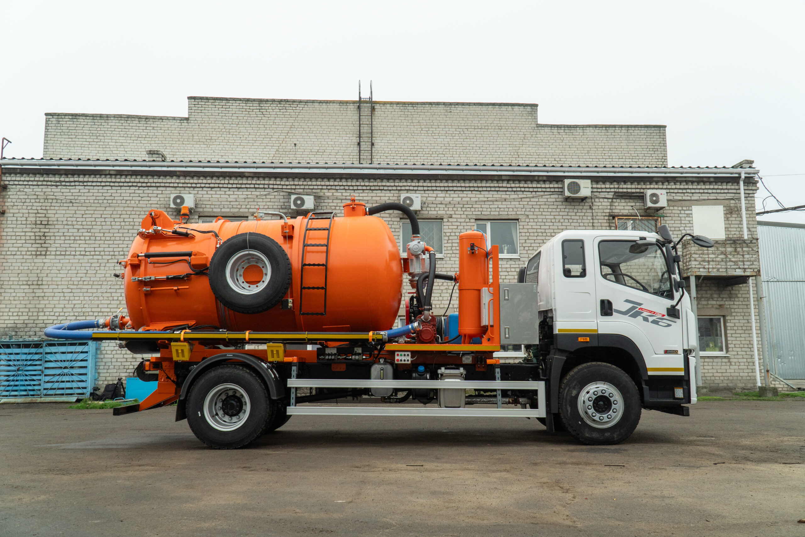 | Комплектація | 1 LED ліхтар підсвітки робочої зони, 1 лоток для транспортування рукава справа по борту, 1 напірний рукав 6 м діаметром 102 мм, CAM-LOCK, 1 приймальний лючок гильйотинного типу, 2 віконця контролю рівня наповнення цистерни, аксіально-поршневий гідравлічний насос для АС-9, 10, 12, 16, бак для оливи з рівнем і термометром, бокові протипідкатні захисти зліва/справа, вакуумний насос з гідравлічним приводом, Італія, денні ходові вогні, драбина на цистерні, електричний підігрів дзеркал, електросклопідіймачі, зумер заднього ходу, кондиціонер, клапани обмеженя надлишкового вакууму та тиску, кондиціонер, кронштейн запасного колеса з лебідкою, магнітола (радіо/MP3), пластикові крила для коліс задньої вісі, пластикові крила з бризковиками, пристрій для зливу залишків у всмоктуючому рукаві, радіатор охолодження оливи для АС-9, 10, 12, 16, рукомийник, рульова колонка, що регулюється, центральний замок |