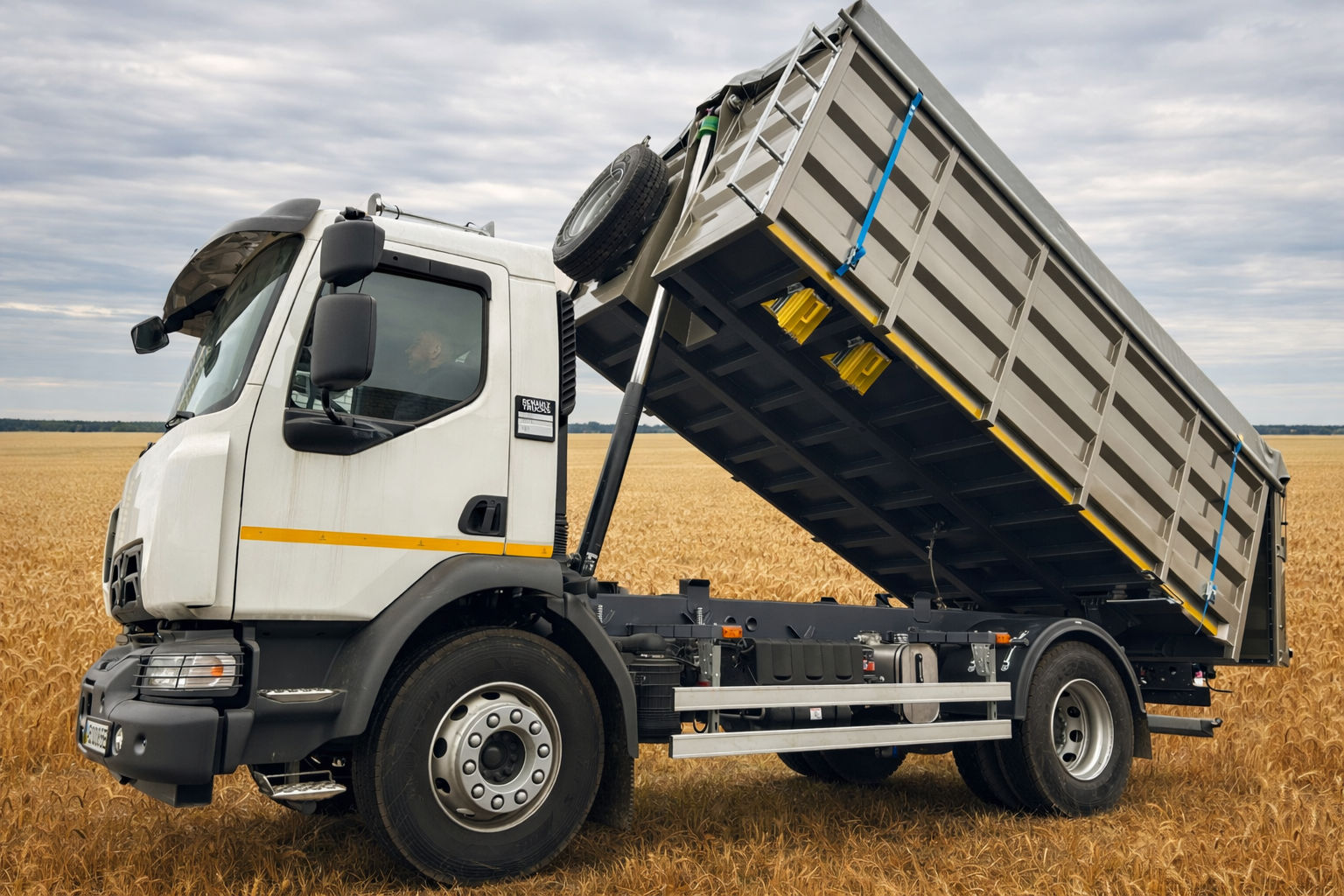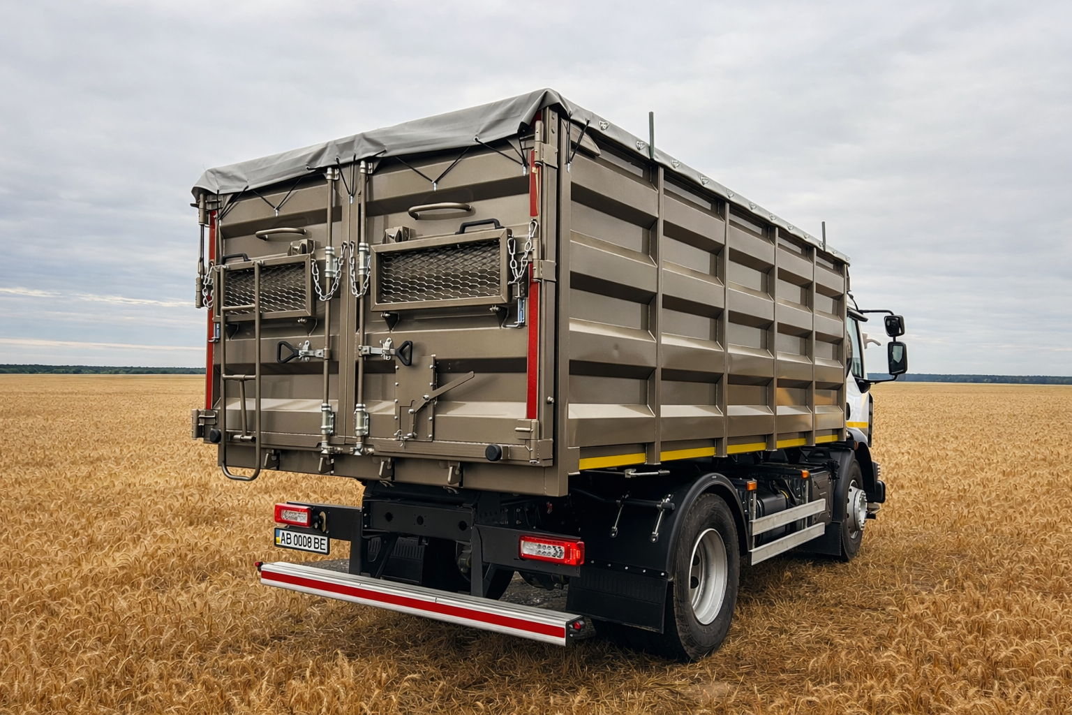 | Комплектація | 4-спицеве кермо з регулюванням висоти та глибини та з перемикачем регулятора швидкості, алюмінієві бокові захисні протипідкатні пристрої, антигравійний захист надрамника та зовн. днища кузова, бронзові підшипники ковзання для фронтального циліндру, гальванічне покриття всіх пальців, гачки для кріплення тенту, гідравлічний бак 60 л з н/ж сталі з фільтром та краном, гідравлічний насос шестеренчатий, гідророзподільник IPH, Італія, гідроциліндр підйому кузова INTERPUMP HYDRAULICS, Італія, гумовий ущильнювач між заднім бортом і кузовом, два протипідкатних башмака з кронштейнами, денні ходові вогні, джойстик керування IPH, Італія, дисплей українською та англійською мовами, додатковий шар тенту в місці контакту з каркасом, електросклопідіймачі, кондиціонер, кронштейн запасного колеса з лебідкою, круїз-контроль з перемикачами на кермі, кут підйому не менше 45°, матеріал кузова та надрамника – 09г2с або ST355, міцний кузов з ребрами жорсткості з профільних труб, підігрів водійського сидіння, піскоструменева обробка металу, пластикові крила для коліс задньої вісі, платформа фарбована з драбиною для обслуговування тенту, ручний замок запирання заднього борту, сидіння водія COMFORT на пневматичній підвісці, система попередження про перетин смуги (LDWS), тент з каркасом із профільних труб, універсальний задній борт – двері та клапан, фарбування епоксидним грунтом та акриловою емаллю, функція стряхування кузова при розвантажені, центральний замок, шиберна засувка – 1 шт |