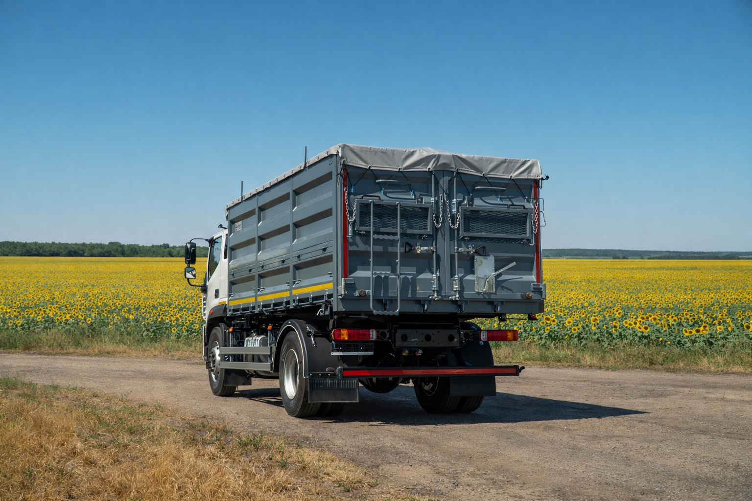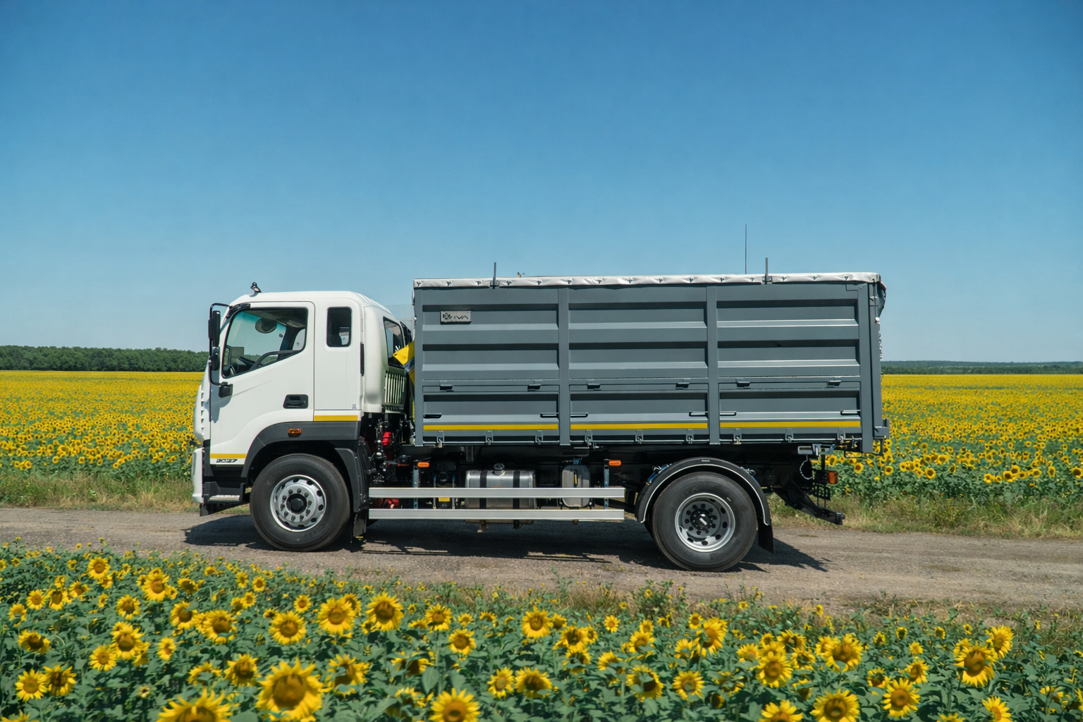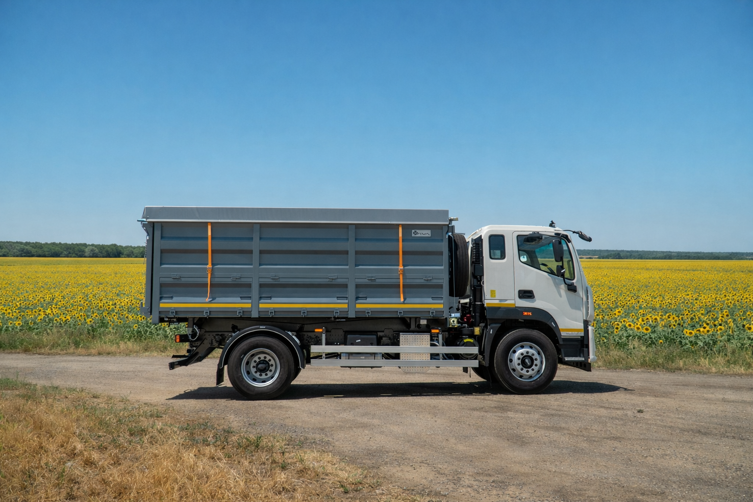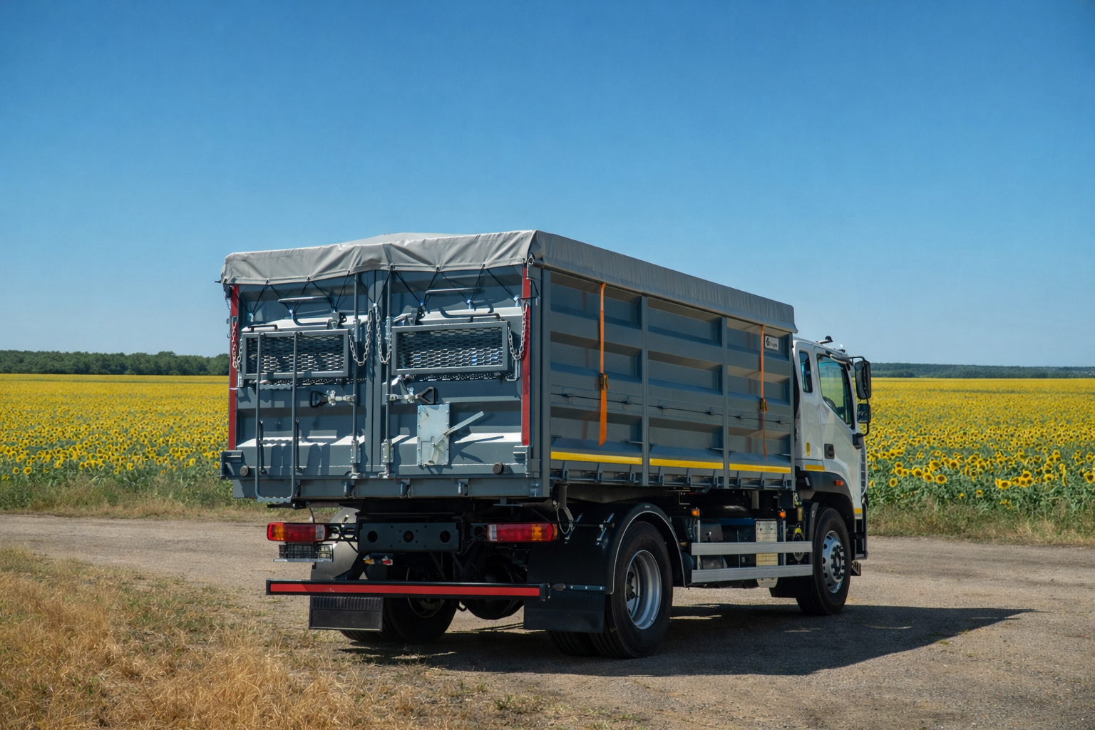 Зерновоз CB GS FOTON 1186 від VIVA – це потужна та сучасна техніка, створена для максимально ефективної роботи в агробізнесі. Автомобіль побудований на шасі FOTON AUMAN BJ1186 з колісною формулою 4×2, оснащений дизельним двигуном об’ємом 6,7 л потужністю 270 к.с. та 8-ступеневою механічною коробкою передач, що забезпечує впевнену динаміку й витривалість у будь-яких умовах. Кузов типу CB GS має місткість 18 м³ і дозволяє перевозити до 10 тонн зерна, а завдяки системі тристороннього розвантаження (назад, направо та наліво) машина легко адаптується до різних завдань. Конструкція продумана до дрібниць: комбінована площадка для обслуговування тенту з подовженою драбиною, посилена каркасна основа з високоякісної сталі S355, надійна контейнерна фурнітура, гумові ущільнювачі та амортизатори, що захищають кузов від пошкоджень. Кузов обладнаний потужним італійським гідроциліндром і системою регулювання кута підйому до 50°, а задній борт має подвійний механізм відкривання та фіксується у чотирьох точках, що гарантує безпечну та стабільну роботу. Надійність, потужність і універсальність роблять CB GS FOTON 1186 незамінним партнером у сезон збору врожаю. З технікою VIVA ви завжди на крок попереду, адже деталі створюють досконалість.