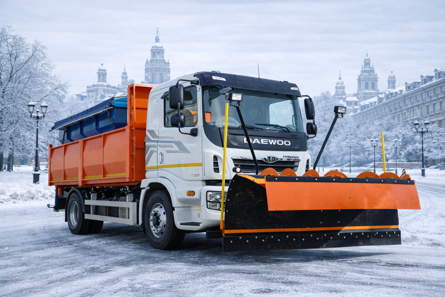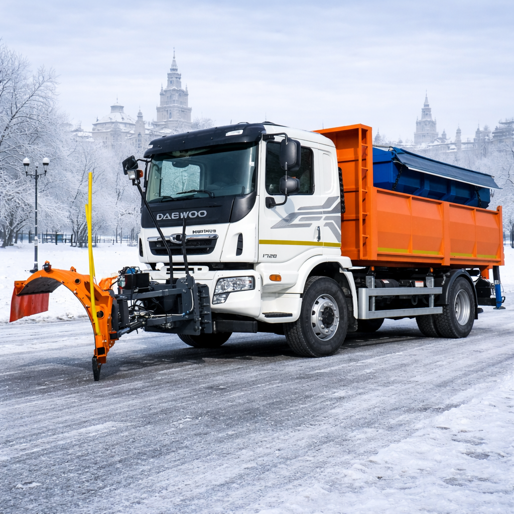 Автомобиль для зимнего содержания дорог МД 1802 на шасси Daewoo Maximus HC2AA предназначен для очистки и обработки дорог в зимний период.