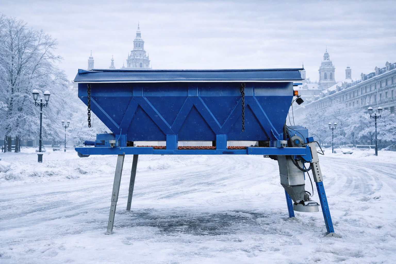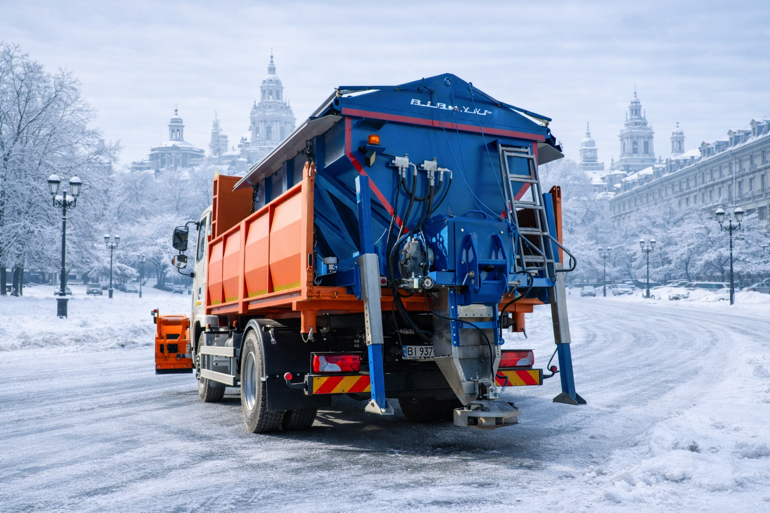 Оснащён снежным отвалом и системой распределения противогололёдных материалов (песко-соляных смесей или жидких реагентов), эффективно борется с гололёдом и снежными заносами.