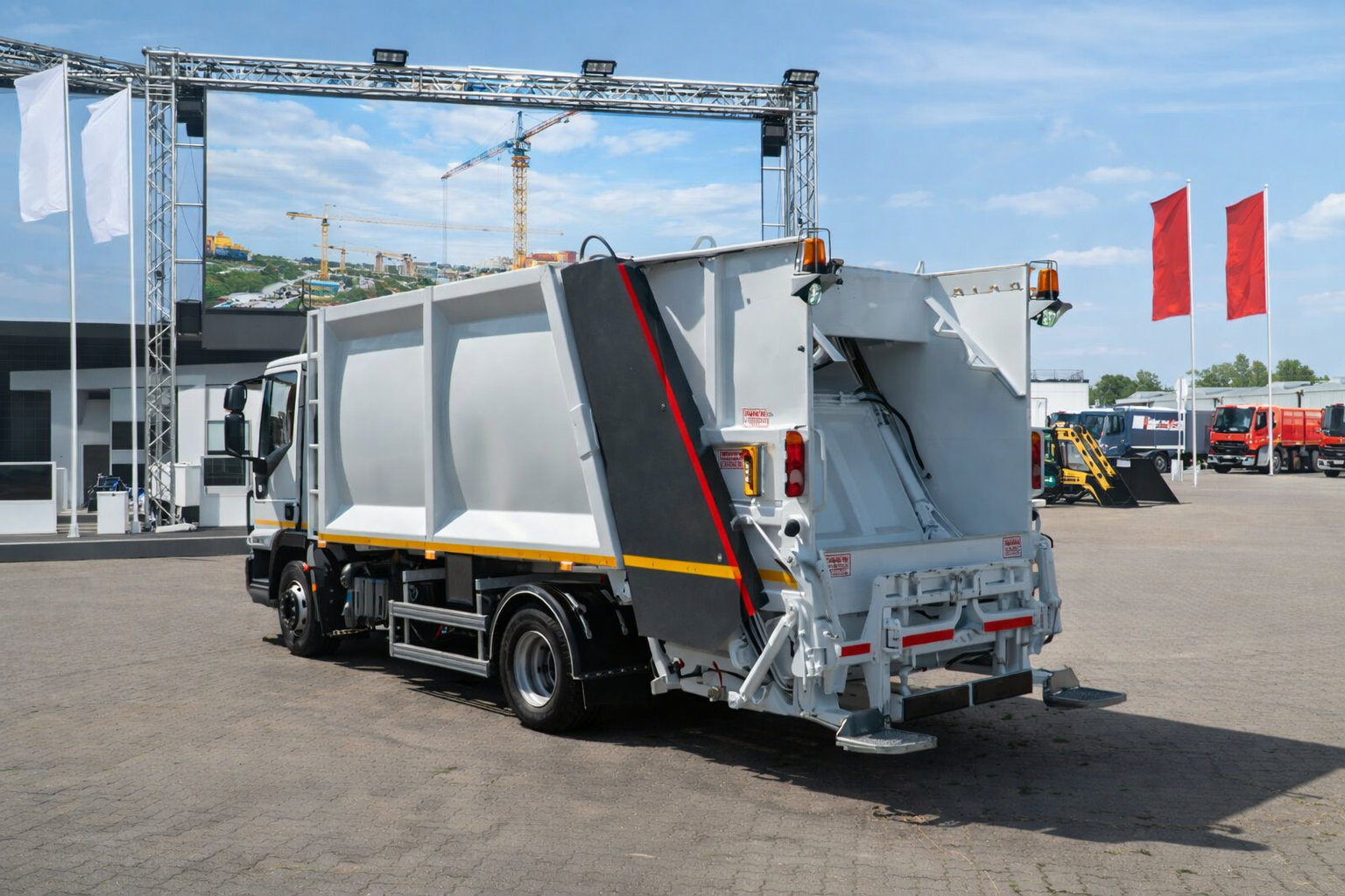 | Комплектация | 1 бак для сбора фильтрата, 1 лестница на бункере стряхивания контейнеров при разгрузке, 2 LED фонаря для подсветки рабочей зоны, 2 подвижные подножки для грузчиков, горячеоцинкованные, 2 проблесковых маячка, AM / FM / Aux In / USB / Bluetooth (радио с Bluetooth), автоматические блокировочные замки на рычажках, автоматические гравитационные блокирующие замки на рычажках, аксиально-поршневой гидравлический насос тандем, бак для масла на 160 л с уровнем и термометром, балочный универсальный механизм засыпки, барабанный тормоз, Моторный тормоз, Система ABS, Блокировка дифференциала, КОМ от КПП, бокові стаціонарні підніжки для вантажників гідравлічний притискач гребінчатого захвату, боковые защитные противоподкатные устройства, бортовой компьютер с технологией интеллектуального прессования SMART PRESS, бункер и механизм прессования прочной конструкции из стали ST355 (09Г2С), возможность быстрой смазки, гребенчатый захват для контейнеров DIN EN 840-1, днище приемной емкости из стали HARDOX 450 или аналог, 6 мм (кроме МИКРО), дополнительное антикоррозионное покрытие крыши и днища бункера, кондиционер, Иммобилайзер, Ключ, соединенный с брелком центрального замка, Тахограф, кронштейн запасного колеса при наличии технической возможности, круиз-контроль, лифтер модели "102":, многослойное грунтование и покраска, наружные зеркала с электроприводом и обогревом, Электрокорректор фар, нож механизма прессования из стали HARDOX 450 или аналог, 8(10)мм (кроме МИКРО), откидной задний борт для облегчения ручной загрузки, отражатель крышки контейнеров с функцией остановки контейнеров DIN EN 840-1, пластиковые крылья для колес задней оси, поперечная опора, передний и задний стабилизаторы поперечной стойки, приемная емкость из стали HARDOX, рулевая колонка регулируемая по вылету и углу наклона, рычаги управления с правой стороны, рычажный захват для контейнеров DIN EN 840-2, 804-3, сиденье водителя с подогревом на пневмоподвеске и фиксированное пассажирское сиденье, стандартная 2-точечная подвеска кабины для дневной кабины, тандем шестеренчатых гидравлических насосов (кроме МИКРО), электронный пульт управления с правой стороны (кроме МИКРО), электростеклоподъёмники |