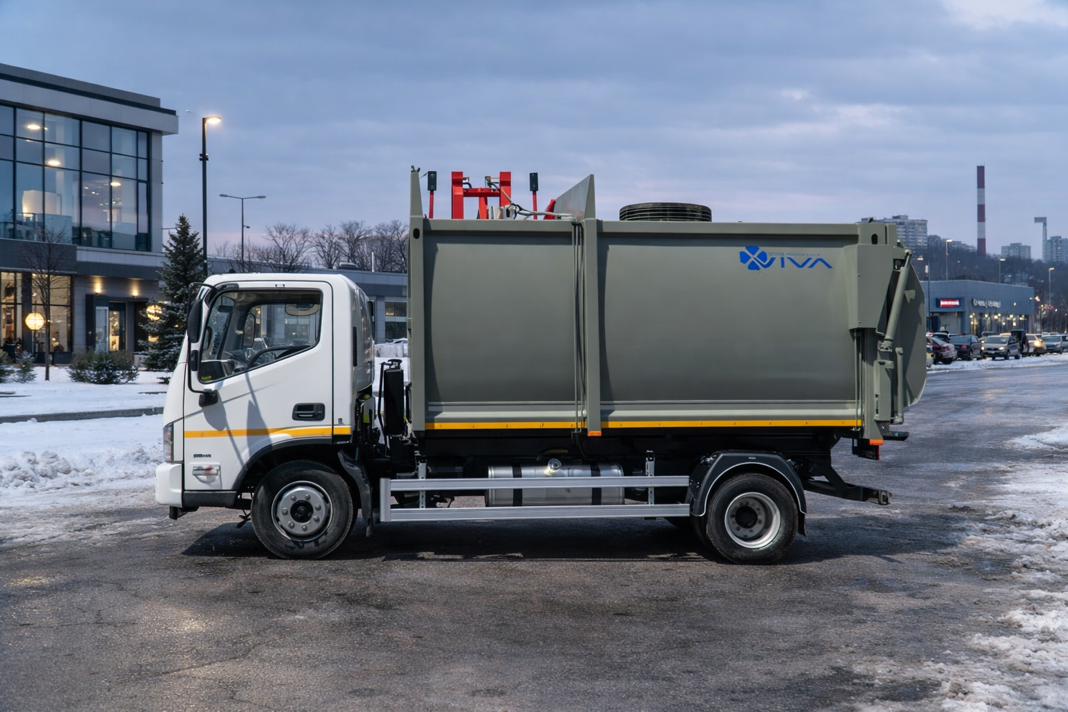 Мусоровоз боковой загрузки «ВЛИВ МИНИ Б 12-10 FT 1108» — это универсальное оборудование, которое позволяет обслуживать как советские контейнеры, так и евроконтейнеры. Шасси FOTON AUMARK BJ 1108 китайского производства является надежным и дополнено хорошими техническими характеристиками, что подтверждено опытом эксплуатации в Украине. Шасси оснащено богатой базовой комплектацией.