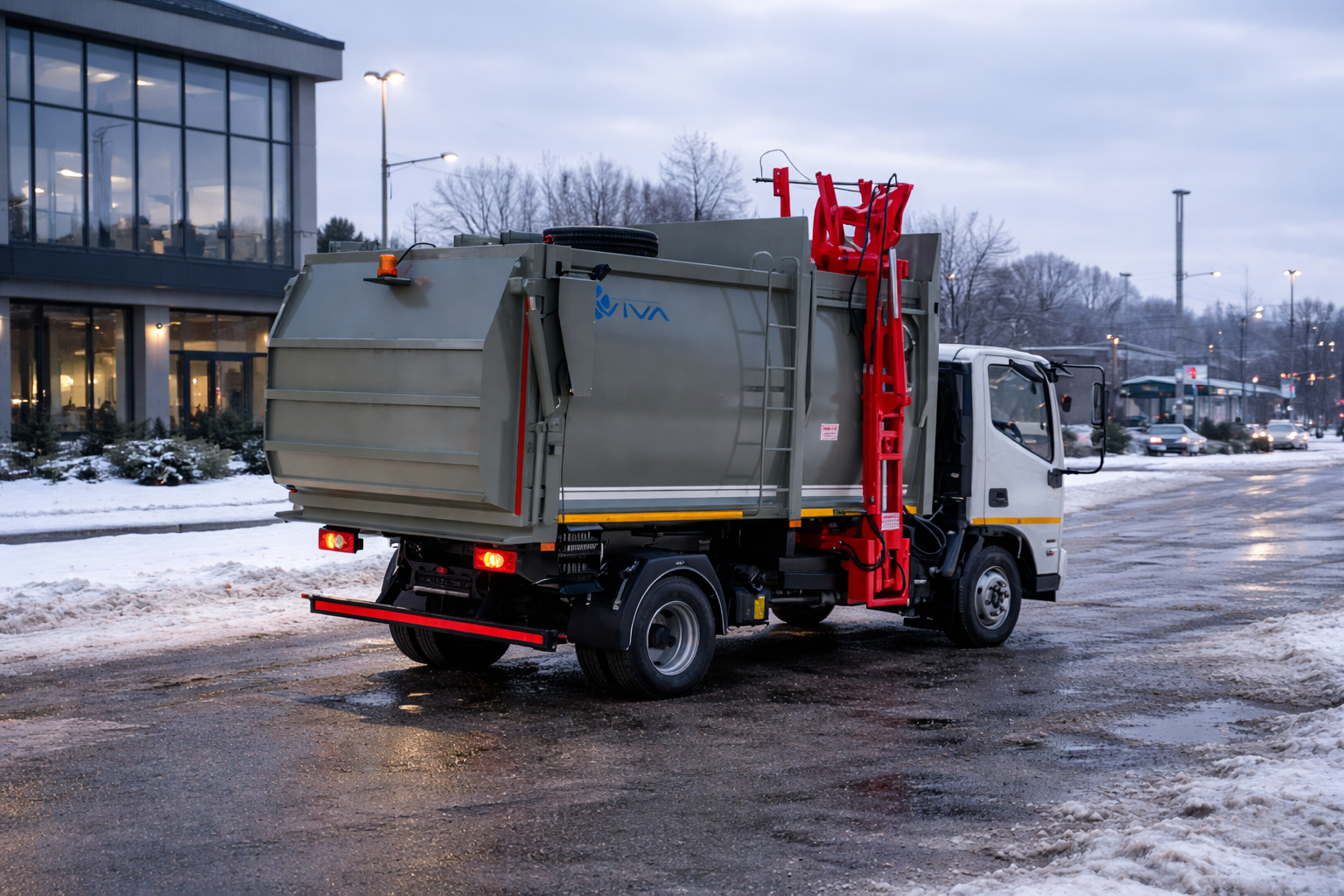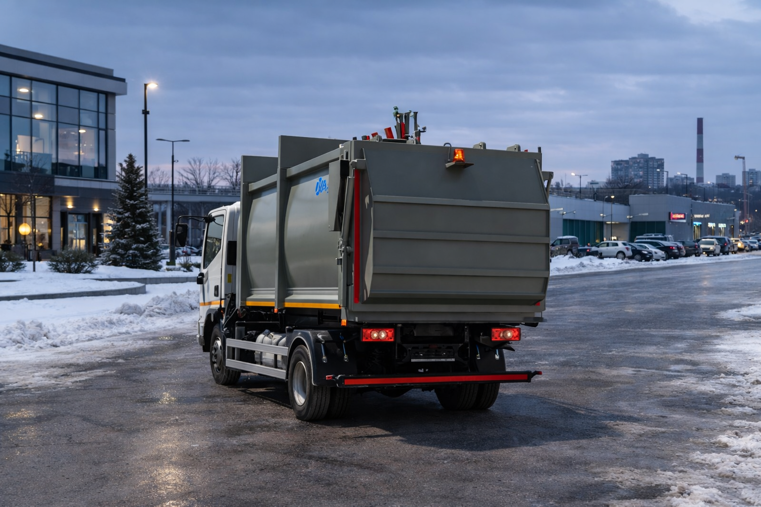 Мусоровоз построен на среднетоннажном автомобильном шасси, которое является оптимальным по соотношению цена – маневренность – грузоподъемность – расход топлива.