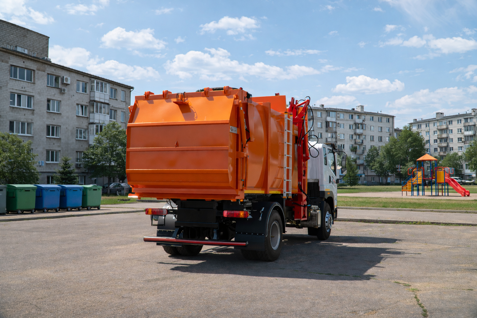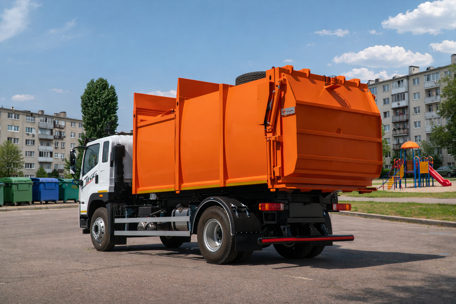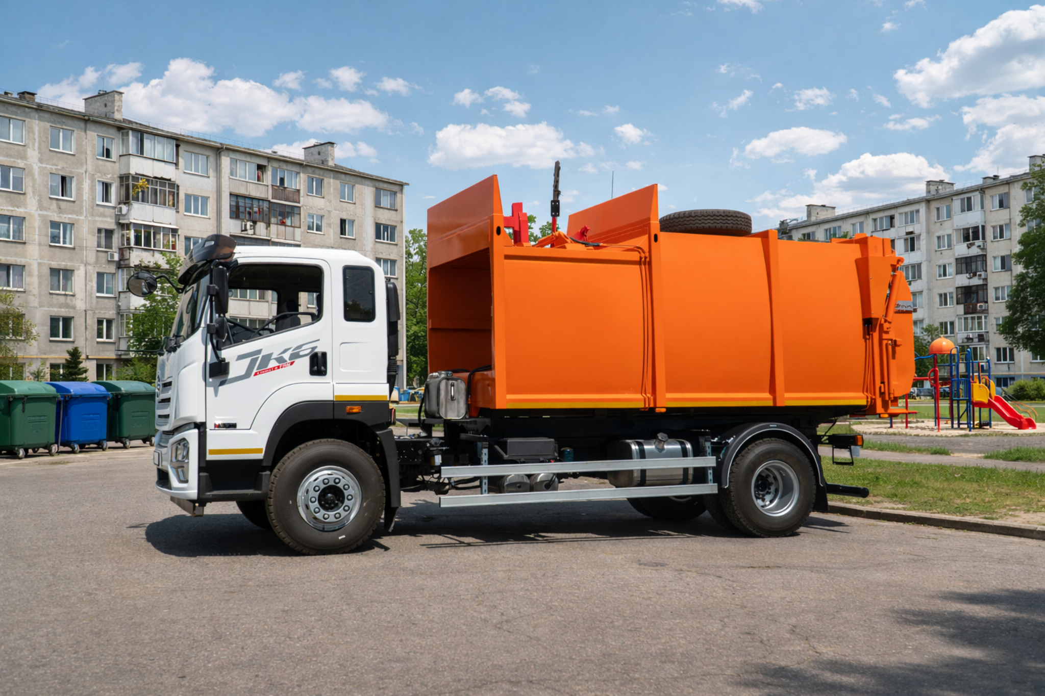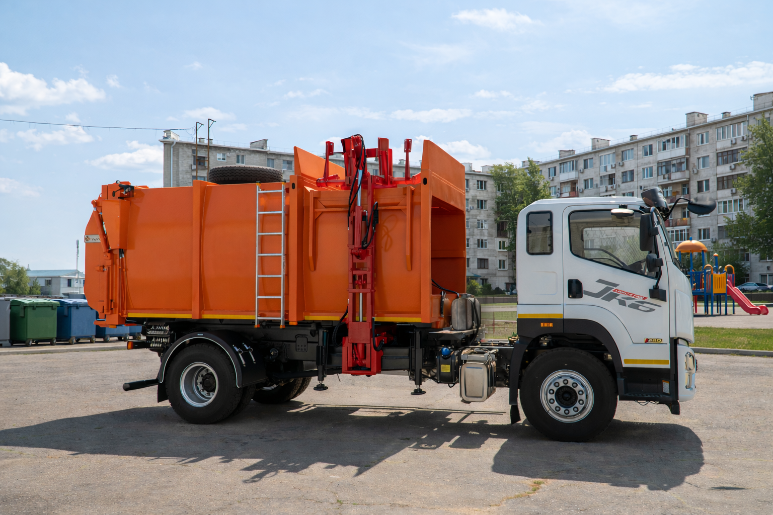Оборудование мусоровоза боковой загрузки типа «ВЛИВ МЕДИУМ Б 18» на базе автомобильного шасси FAW CA5181 предназначено для механизированного сбора, уплотнения, транспортировки и выгрузки твёрдых бытовых отходов. Конструкция включает бункер объёмом 18 м³ с уплотняющим механизмом, боковой механизм захвата и подъёма контейнеров, гидравлическую систему, электрооборудование и системы управления безопасностью. Надёжное шасси FAW в сочетании с мощным двигателем и оптимальной грузоподъёмностью обеспечивает стабильную работу техники в городских и пригородных условиях. Система боковой загрузки позволяет обслуживать контейнеры объёмом 660, 770 и 1100 л, а также контейнеры типа К-075, что делает мусоровоз универсальным решением для коммунальных предприятий. Рациональные габариты и функциональная конструкция обеспечивают эффективное использование техники на контейнерных площадках и повышают производительность сбора отходов.