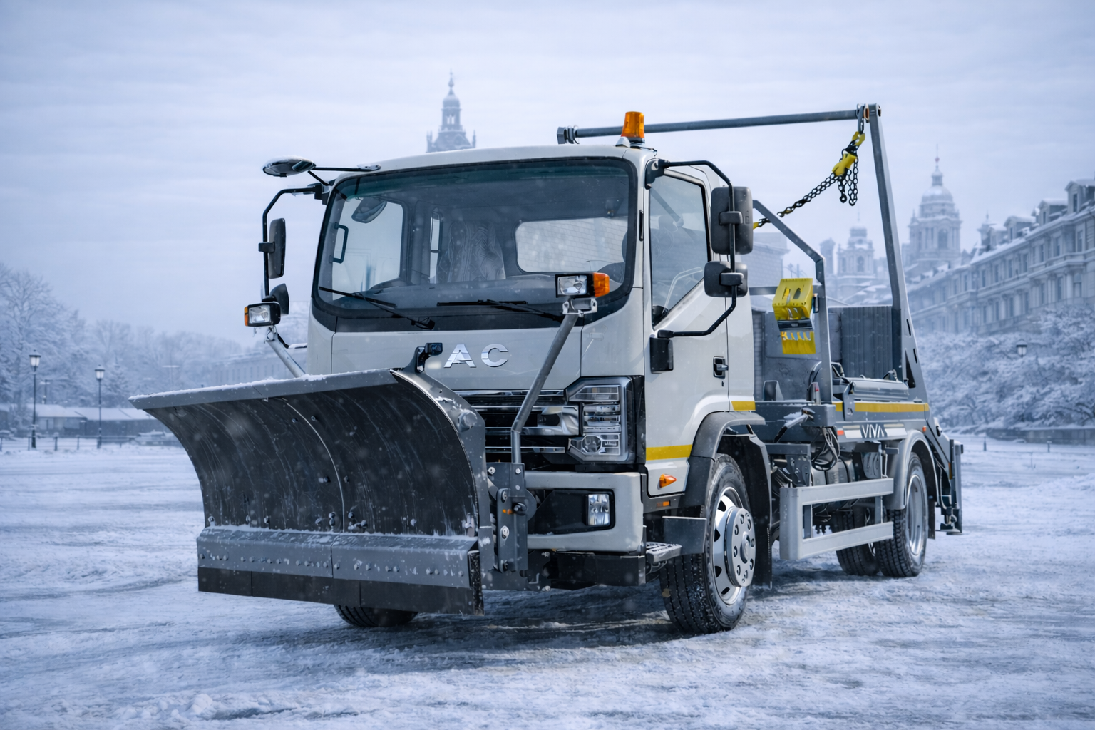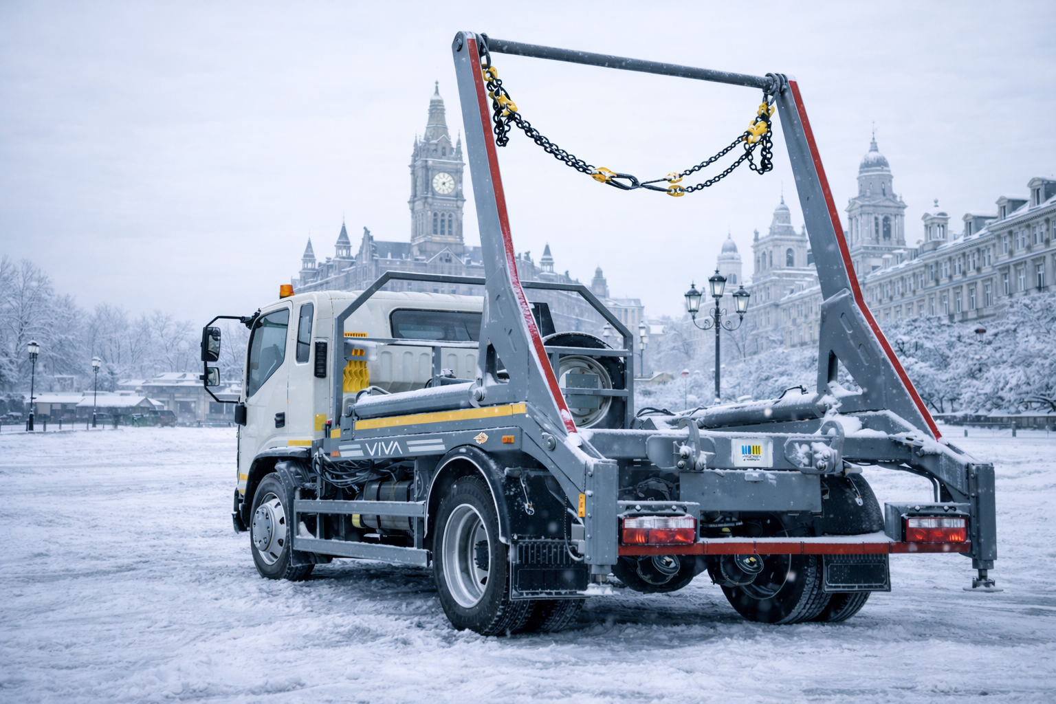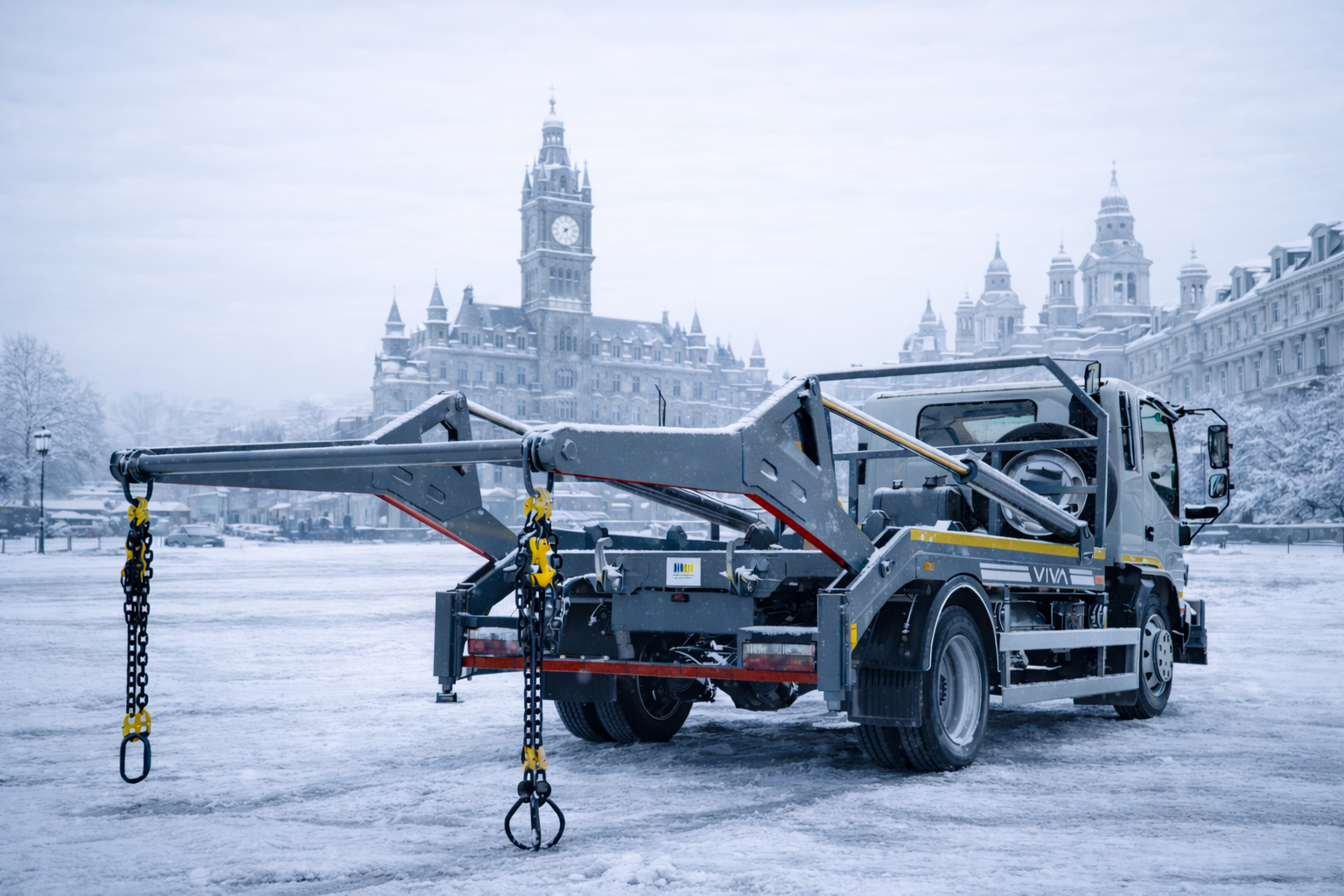 Специализированный автомобиль – скип-лифт ВИВА ВАС – 0903/1, на базе автомобильного шасси JAC N120, предназначен для загрузки с помощью цепного захвата и транспортировки сменных кузовов – контейнеров. Автомобиль соответствует современным европейским требованиям по компактности и манёвренности, что позволяет ему эффективно работать в условиях ограниченного пространства. Он способен поднимать груз и перемещать его горизонтально, без наклона, даже через препятствия. Один автомобиль может эффективно обслуживать большое количество сменных контейнеров, что повышает продуктивность и экономичность эксплуатации.