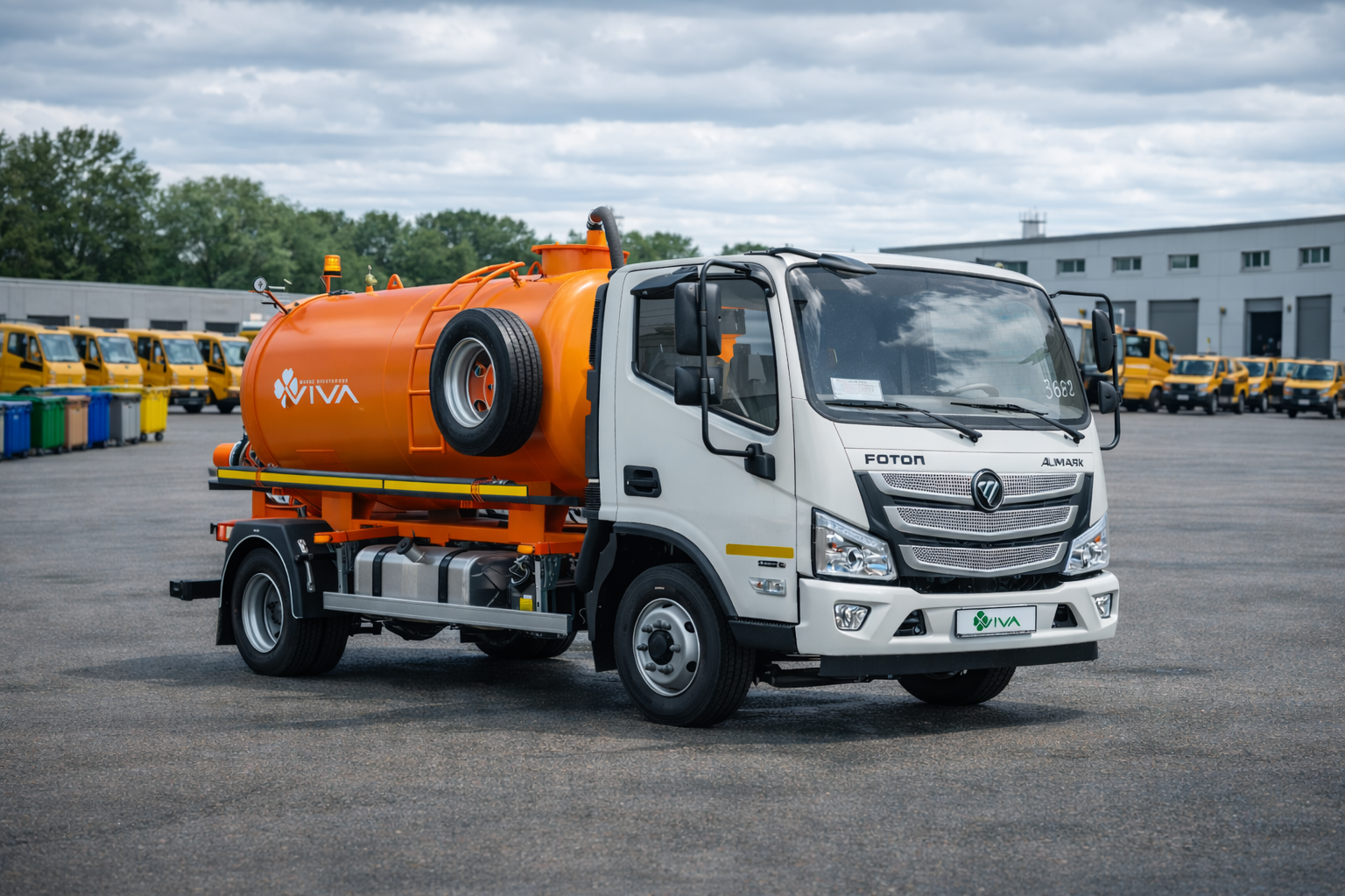 Вакуумный автомобиль ВИВА АС 0802, на базе автомобильного шасси FOTON AUMARK BJ 1108 GVW, предназначен для вакуумного сбора, транспортирования и слива жидких отходов, не содержащих взрывчатых или горючих веществ. Автомобиль состоит из шасси, цистерны, вакуумного насоса с приводом, сигнально-предохранительного устройства, приемного люка с всасывающим шлангом, управляющих кранов с трубопроводом и дополнительного электрооборудования. Заполнение цистерны осуществляется под действием вакуума, опорожнение цистерны — самотеком или под давлением воздуха от вакуумного насоса.