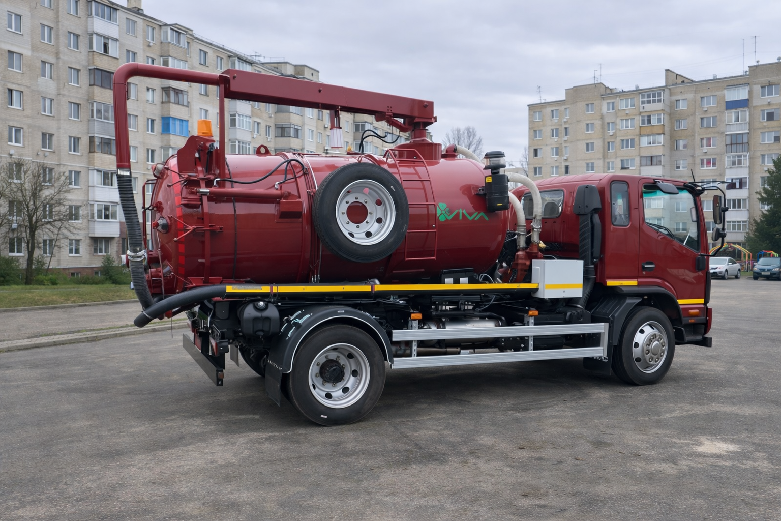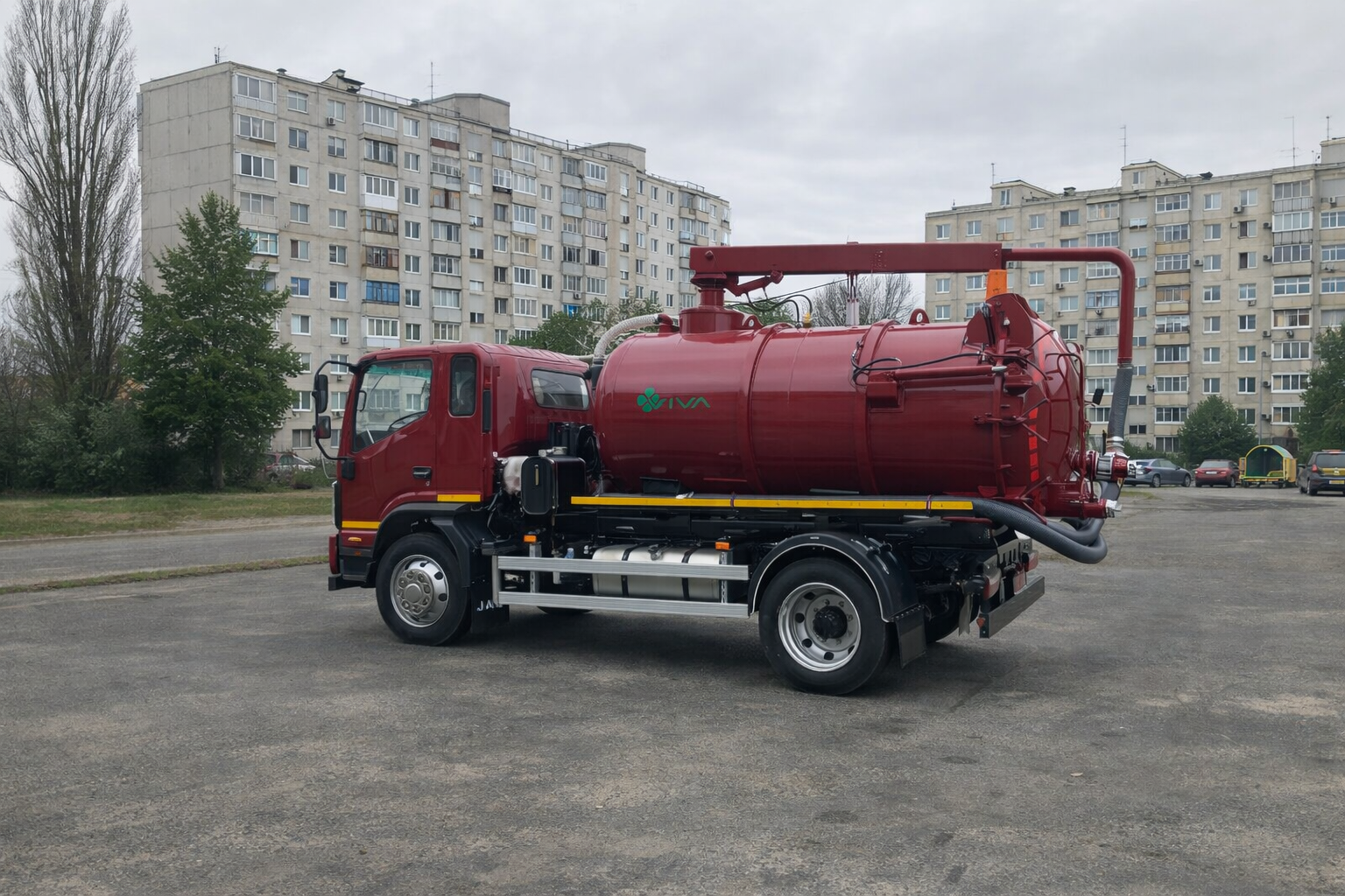 Автомобиль илососный ВИВА ММ 0702 на базе автомобильного шасси JAC N120 предназначен для вакуумной очистки колодцев, выгребных ям, септиков, дождевых и канализационных стоков от жидких отходов и ила с последующей транспортировкой и разгрузкой в местах утилизации. Машина представляет собой автомобильное шасси JAC N120, на котором смонтировано специализированное оборудование. Подъем заднего днища и цистерны в целом осуществляется с помощью гидравлики, а верхняя поворотная стрела облегчает работу в труднодоступных местах с возможностью управления с дистанционного пульта.