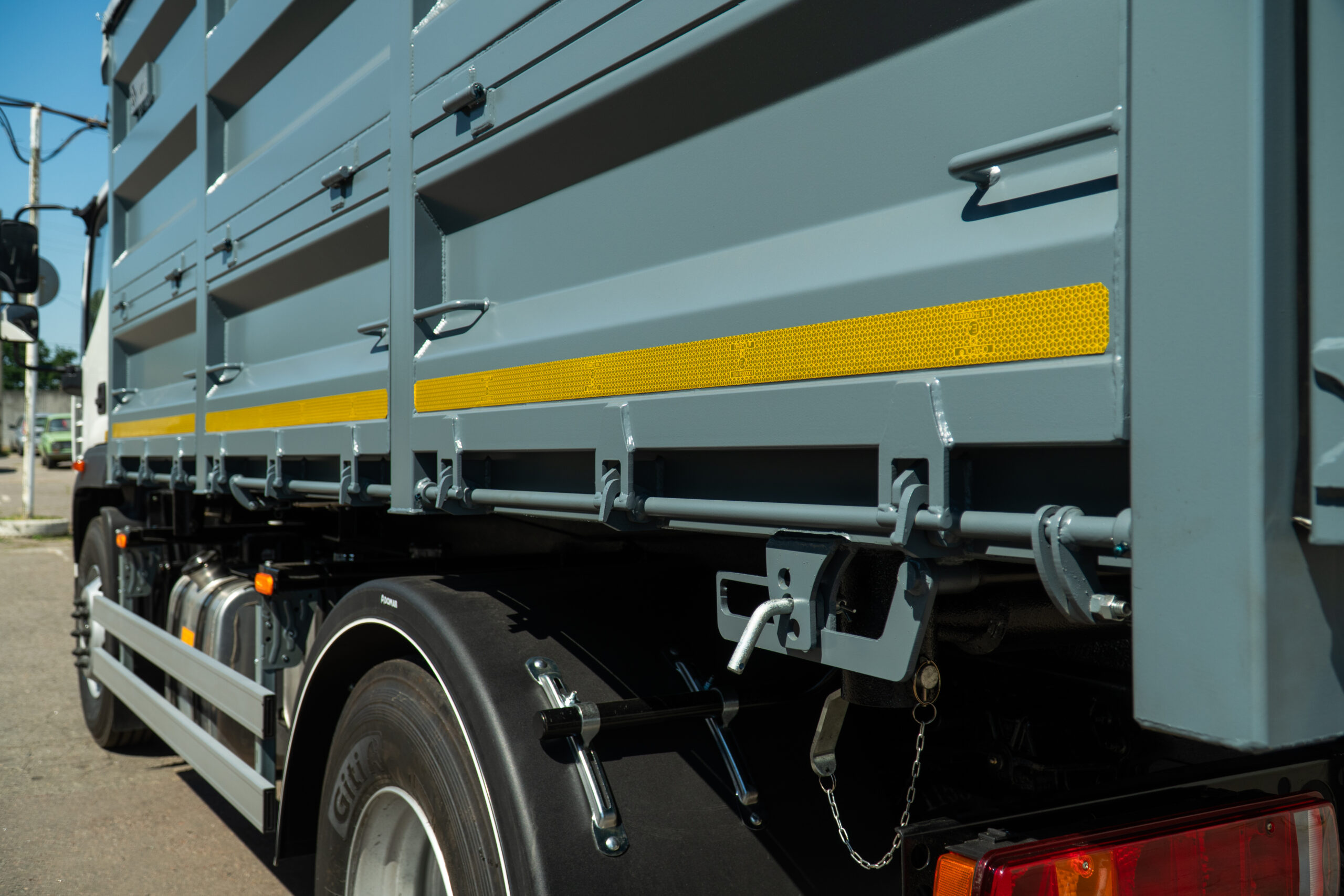 Зерновоз CB GS FOTON 1186 от VIVA – это мощная и современная техника, созданная для максимально эффективной работы в агробизнесе. Автомобиль построен на шасси FOTON AUMAN BJ1186 с колесной формулой 4×2, оснащён дизельным двигателем объёмом 6,7 л мощностью 270 л.с. и 8-ступенчатой механической коробкой передач, что обеспечивает уверенную динамику и выносливость в любых условиях. Кузов типа CB GS имеет вместимость 18 м³ и позволяет перевозить до 10 тонн зерна, а благодаря системе трёхсторонней разгрузки (назад, направо и налево) машина легко адаптируется к различным задачам. Конструкция продумана до мелочей: комбинированная площадка для обслуживания тента с удлинённой лестницей, усиленная каркасная основа из высококачественной стали S355, надёжная контейнерная фурнитура, резиновые уплотнители и амортизаторы, защищающие кузов от повреждений. Кузов оборудован мощным итальянским гидроцилиндром и системой регулировки угла подъёма до 50°, а задний борт имеет двойной механизм открывания и фиксируется в четырёх точках, что гарантирует безопасную и стабильную работу. Надёжность, мощность и универсальность делают CB GS FOTON 1186 незаменимым партнёром в сезон сбора урожая. С техникой VIVA вы всегда на шаг впереди, ведь детали создают совершенство.